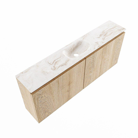 MONDIAZ TURE-DLUX 120cm meuble WC Washed Oak. Lavabo EDEN Frappe position milieu. Sans trou de robinet.