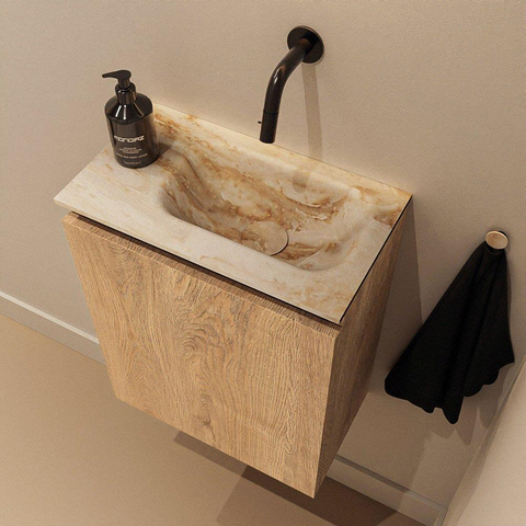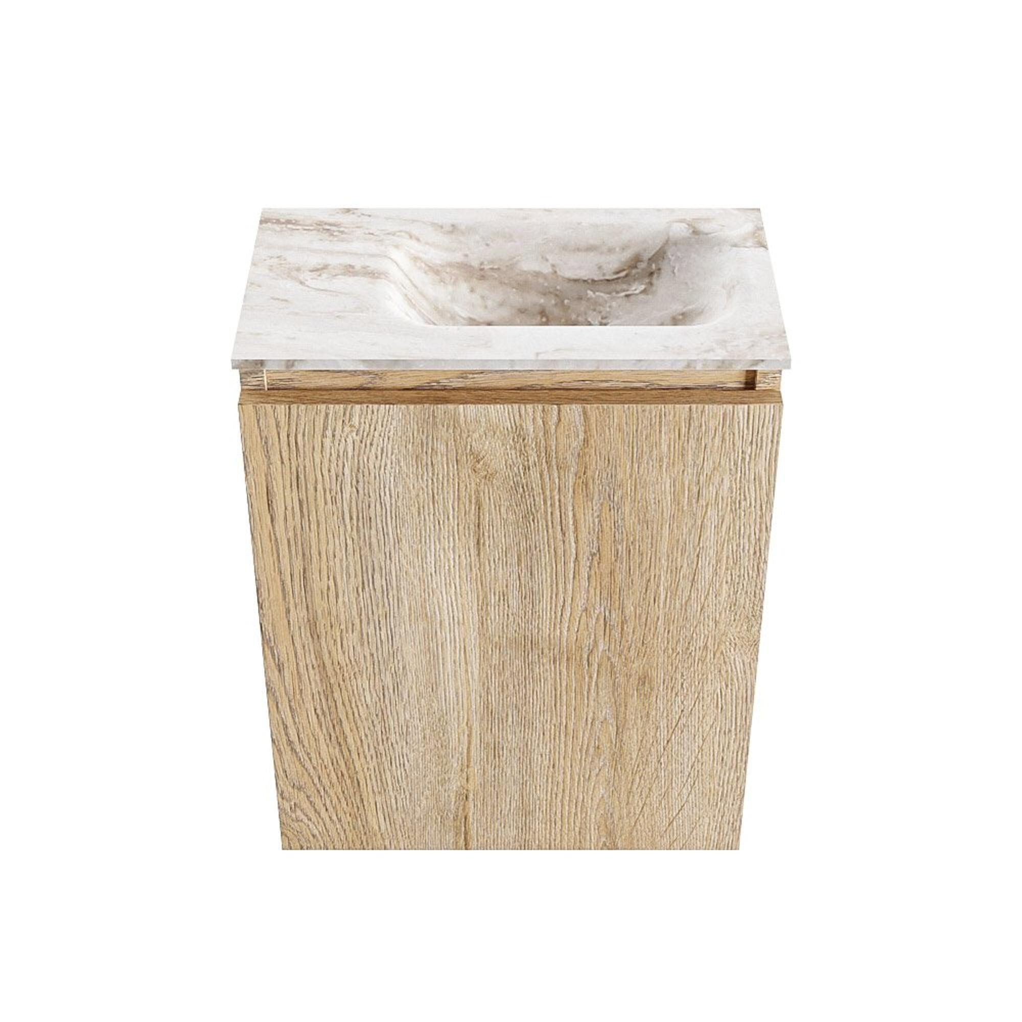 MONDIAZ TURE-DLUX Meuble de toilette 40 cm Washed Oak. Lavabo EDEN Frappe position à droite. Sans trou de robinet.