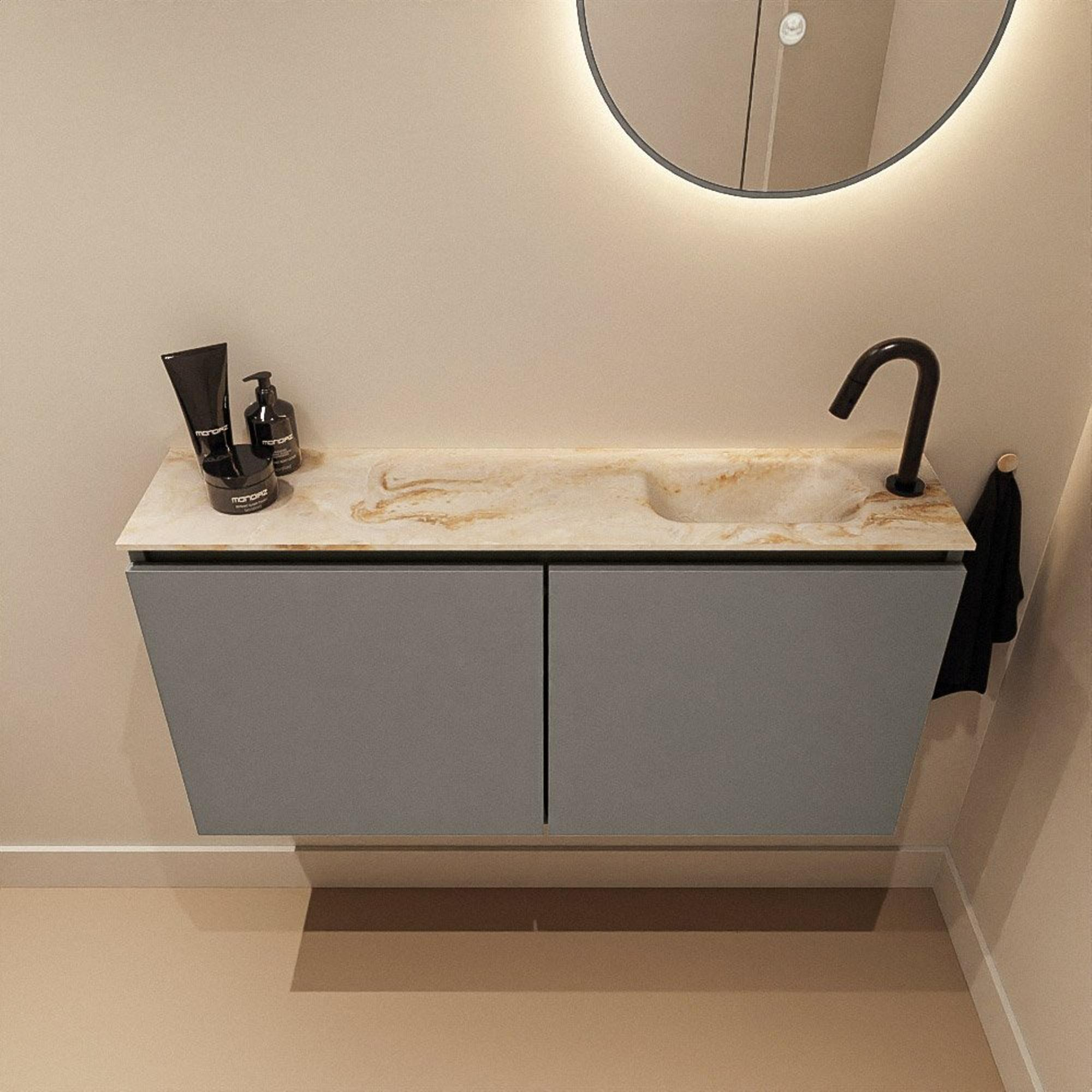 MONDIAZ TURE-DLUX 100cm meuble de toilettes Smoke. EDEN lavabo Frappe position droite. Avec 1 trou de robinet.