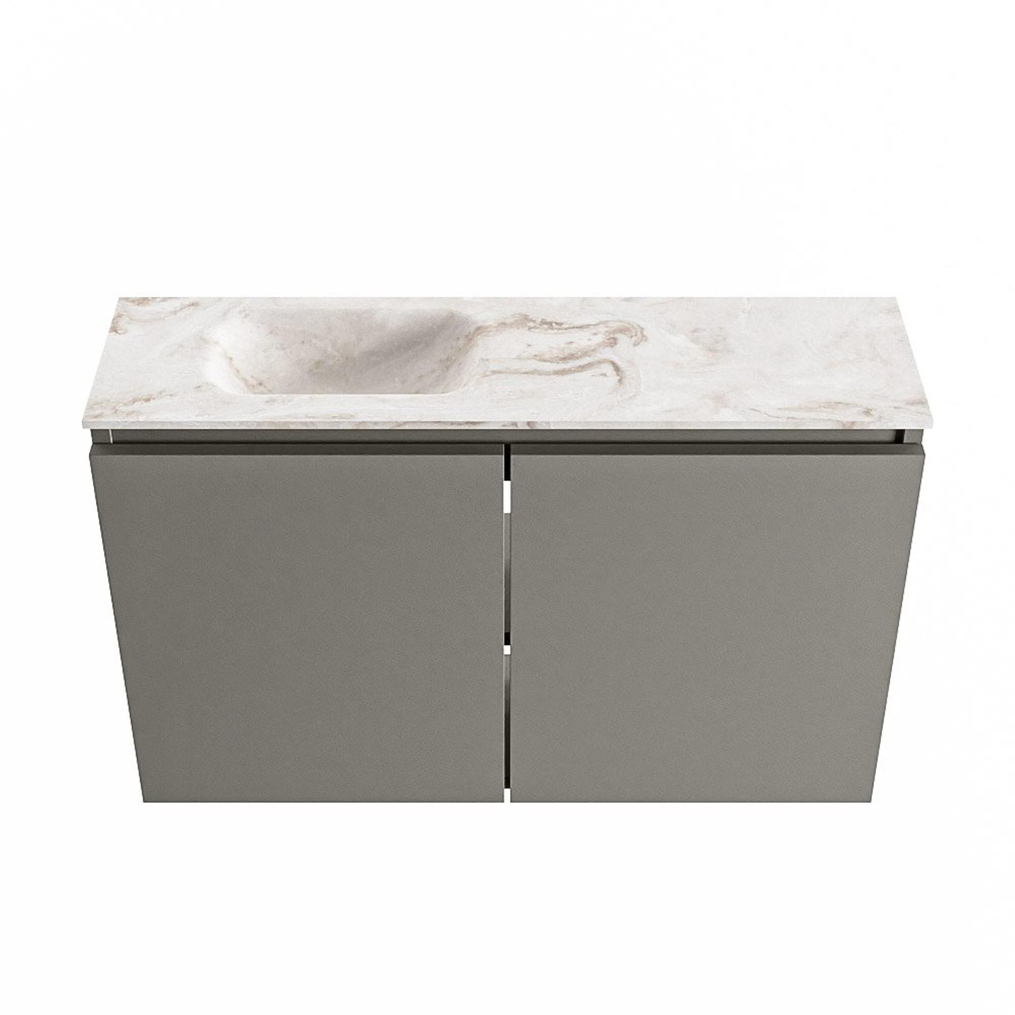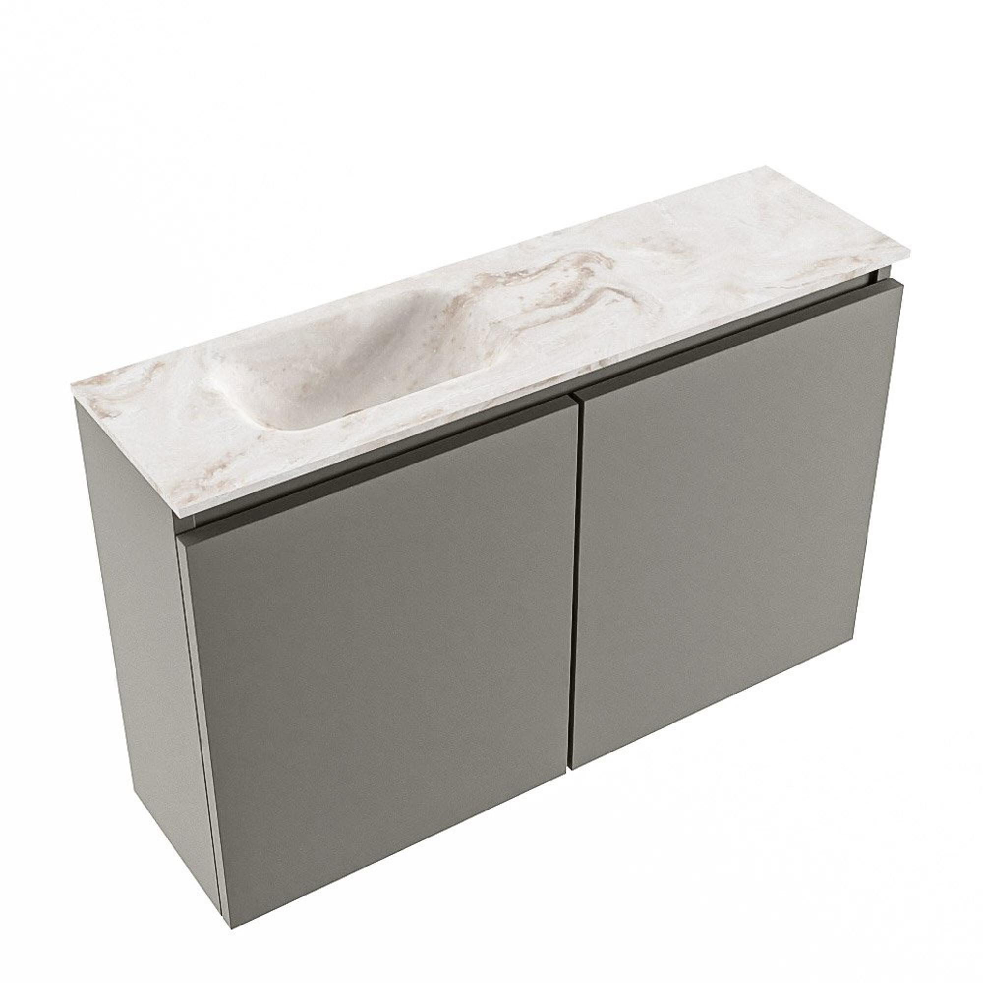 MONDIAZ TURE-DLUX Meuble de toilette 80cm Smoke. Lavabo EDEN Frappe position gauche. Avec 1 trou de robinet.