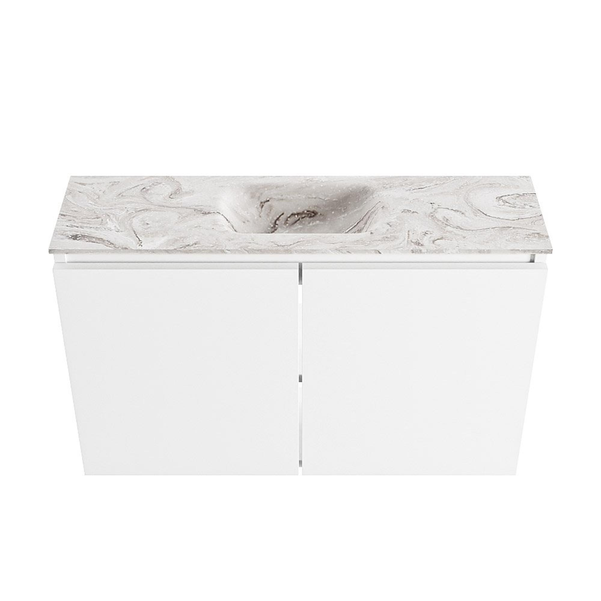 MONDIAZ TURE-DLUX Meuble WC 80 cm Talc. Vasque EDEN Glace position centrale. Sans trou de robinet.