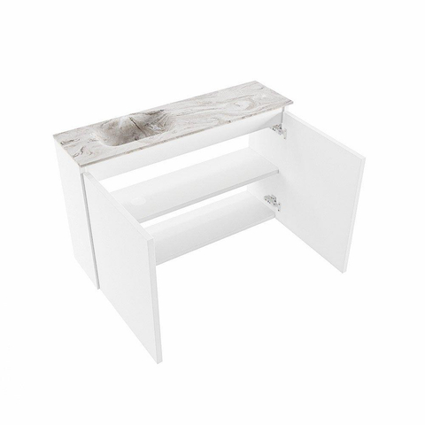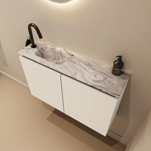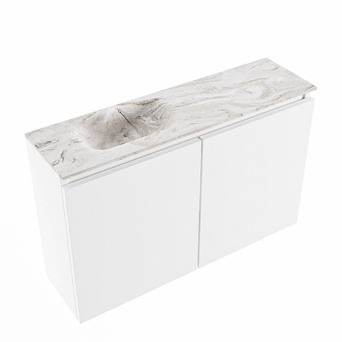 MONDIAZ TURE-DLUX Meuble de toilettes 80 cm Talc. EDEN lavabo Glace position à gauche. Avec 1 trou de robinet.