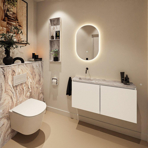 MONDIAZ TURE-DLUX Meuble de toilette 100cm Talc. EDEN lavabo Glace position gauche. Sans trou de robinet.