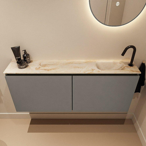 MONDIAZ TURE-DLUX Meuble WC 120 cm Smoke. EDEN lavabo Frappe position droite. Avec 1 trou de robinet.