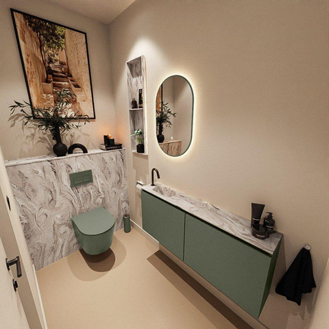 MONDIAZ TURE-DLUX Meuble WC 120cm Army. Lavabo EDEN Glace position gauche. Avec 1 trou de robinet.