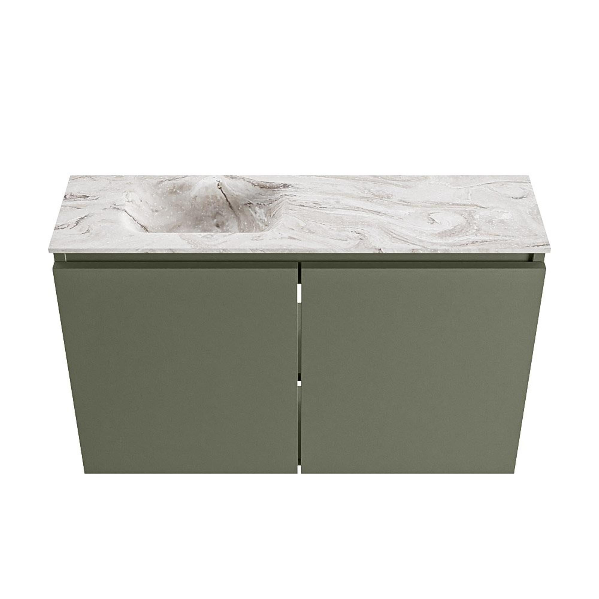 MONDIAZ TURE-DLUX Meuble de toilettes 80 cm Army. Lavabo EDEN Glace position gauche. Avec 1 trou de robinet.