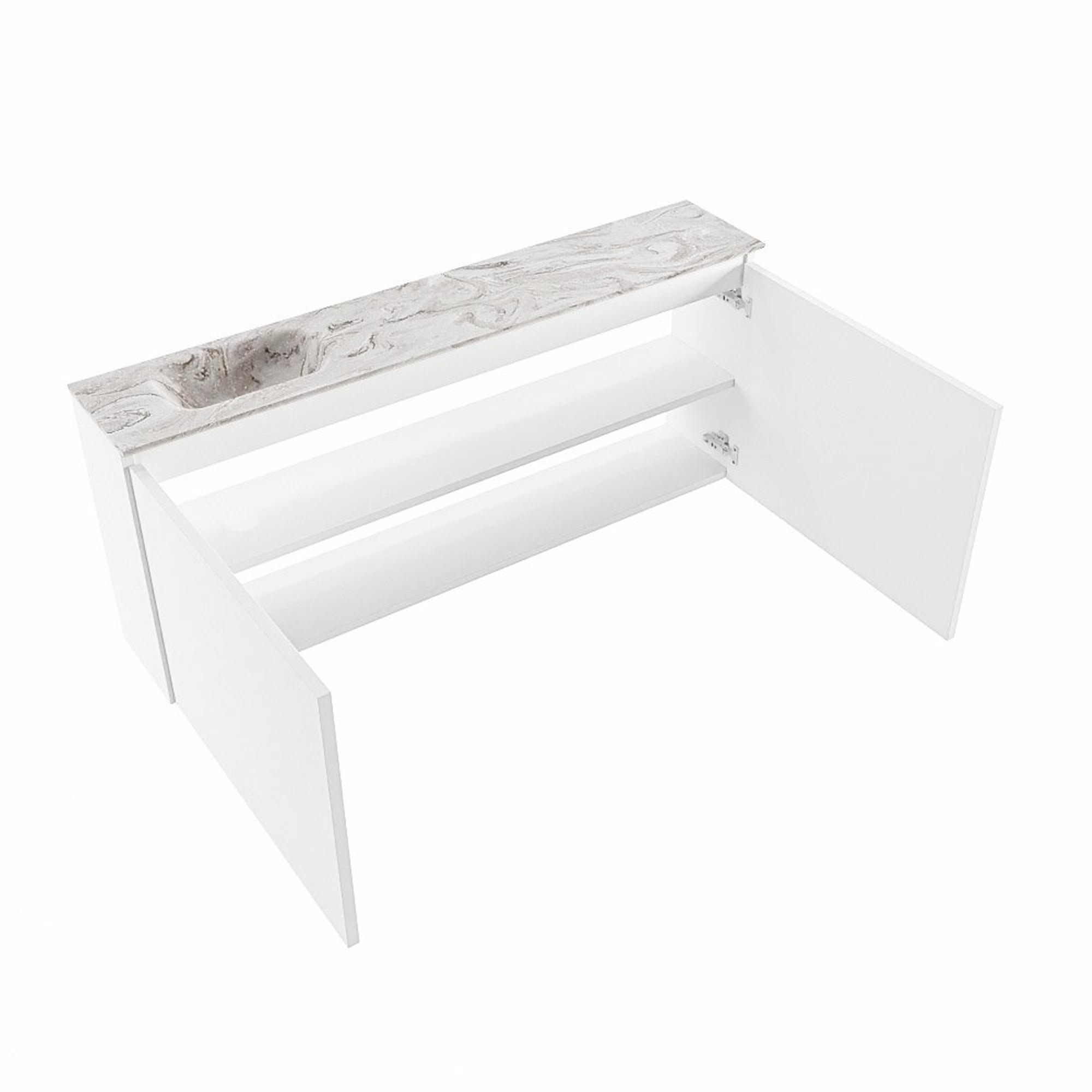 MONDIAZ TURE-DLUX Meuble de toilettes 120cm Talc. EDEN vasque Glace position gauche. Sans trou de robinet.
