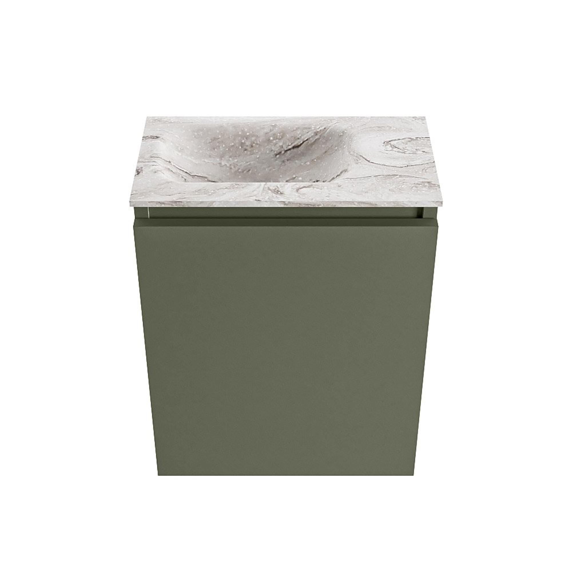 MONDIAZ TURE-DLUX Meuble de toilettes 40 cm Army. EDEN lavabo Glace position gauche. Sans trou de robinet.