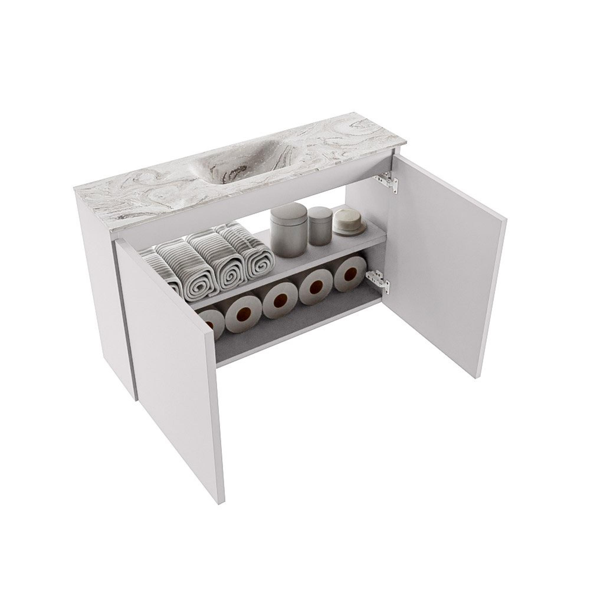 MONDIAZ TURE-DLUX meuble de toilettes 80cm Cale. EDEN lavabo Glace position milieu. Sans trou de robinet.