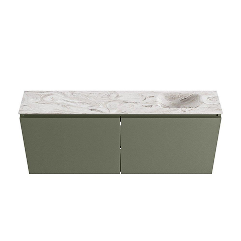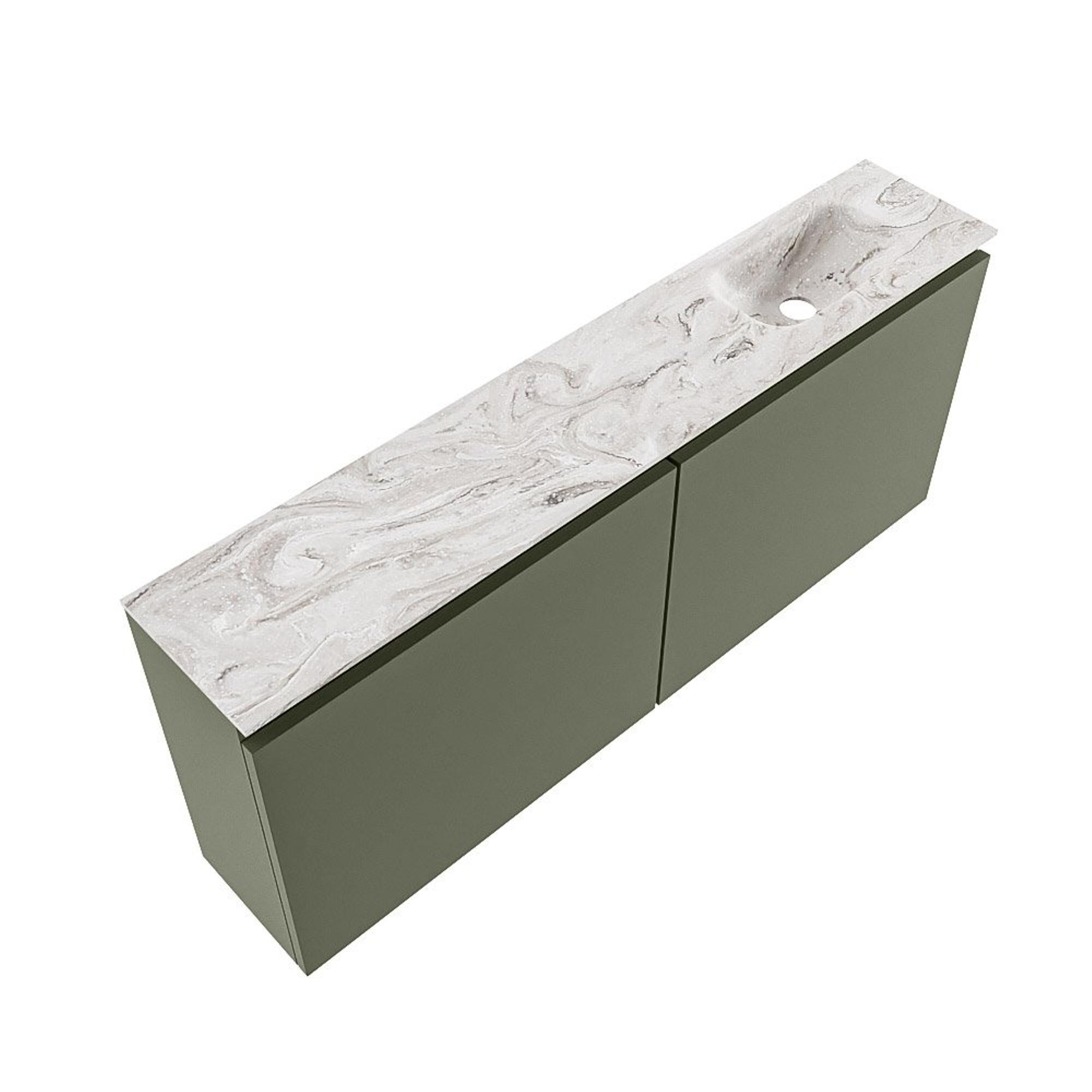 MONDIAZ TURE-DLUX Meuble de toilettes 120cm Army. Lavabo EDEN Glace position droite. Sans trou de robinet.
