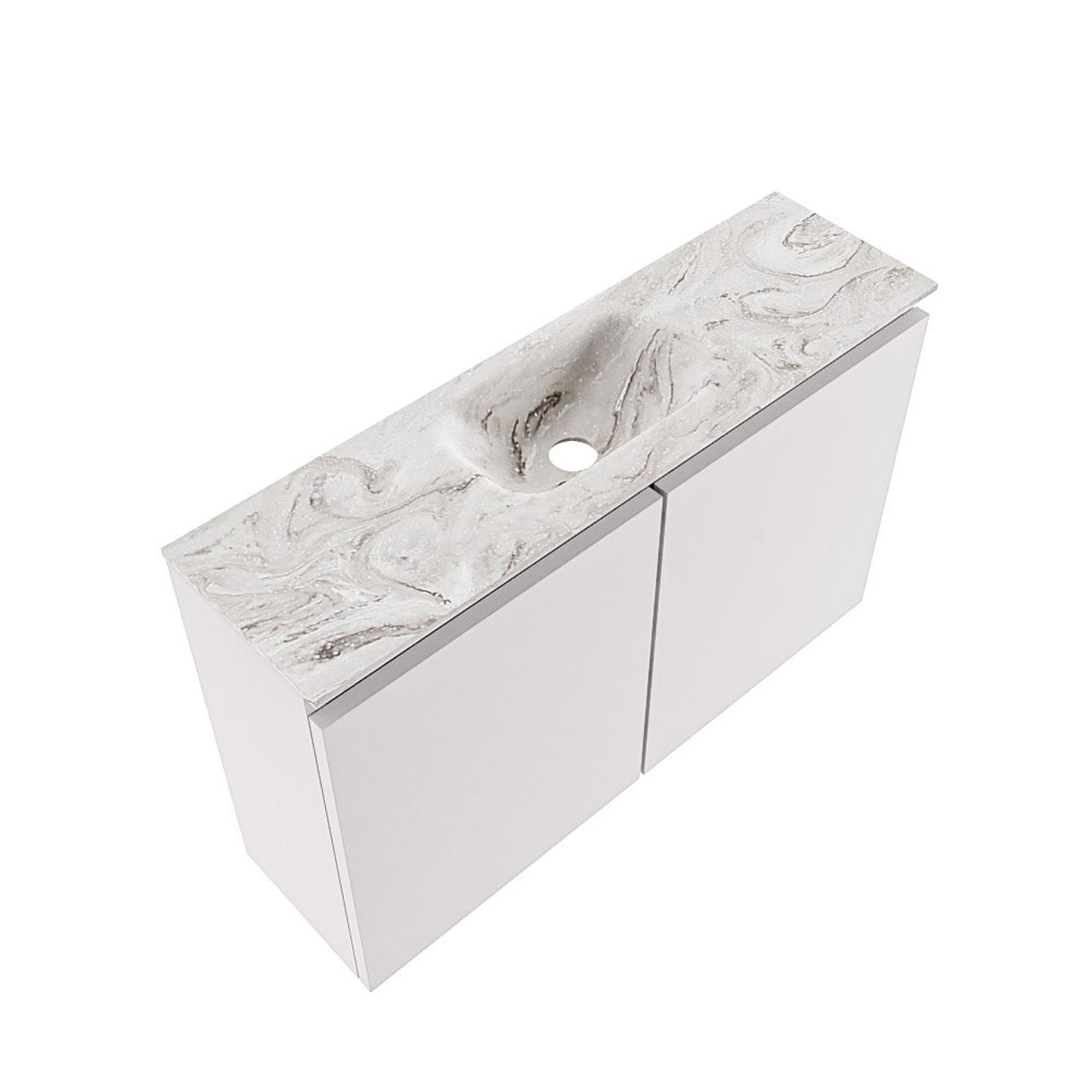 MONDIAZ TURE-DLUX Meuble de toilette 80 cm Cale. EDEN vasque Glace position centrale. Avec 1 trou de robinet.