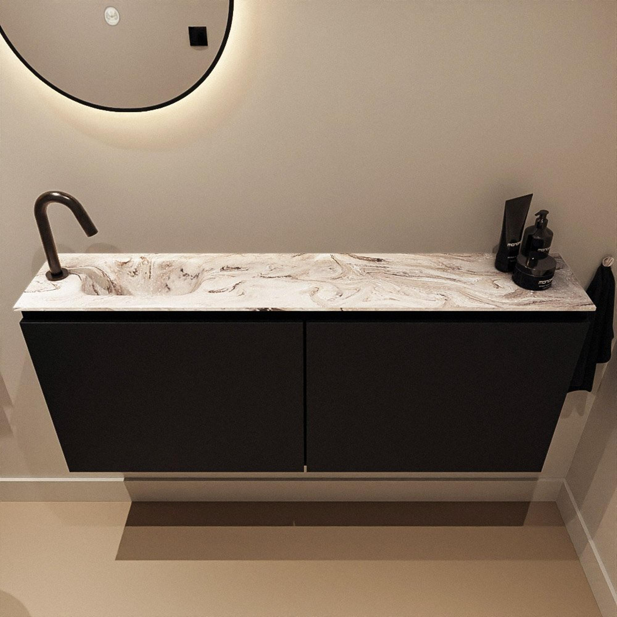 MONDIAZ TURE-DLUX Meuble de toilettes 120cm Urban. EDEN vasque Glace position gauche. Avec 1 trou de robinet.