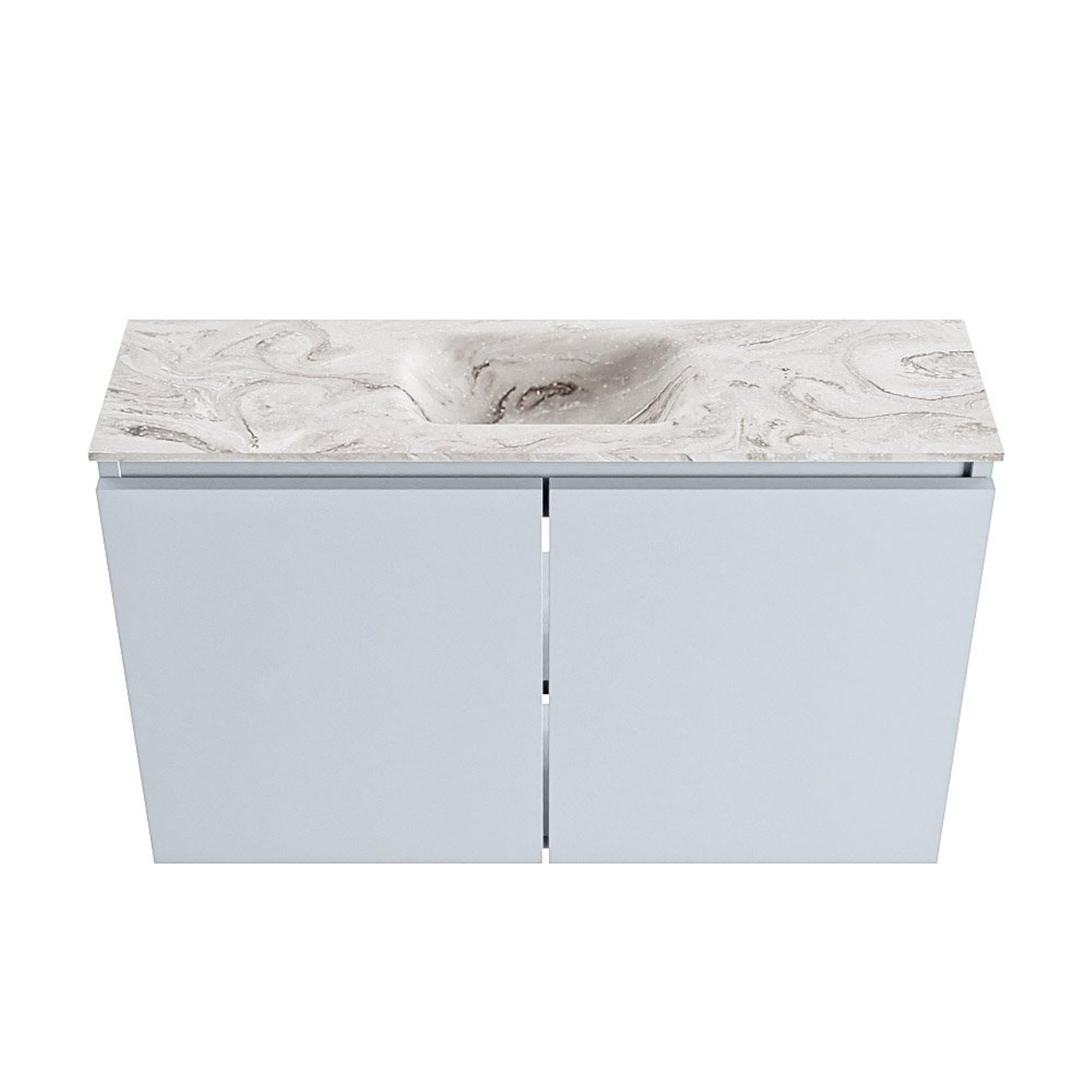 - Plan de couleur marbre avec lavabo EDEN Solid Surface couleur Glace, position centrale.