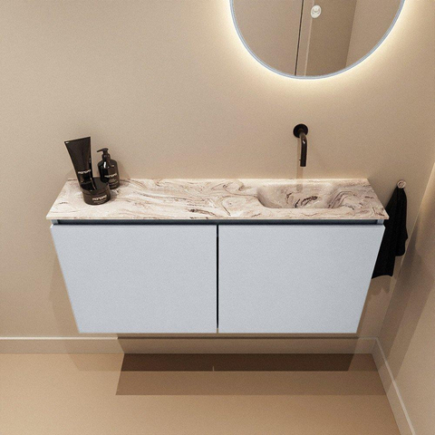 MONDIAZ TURE-DLUX 100cm meuble de toilettes Clay. EDEN lavabo Glace position droite. Sans trou de robinet.