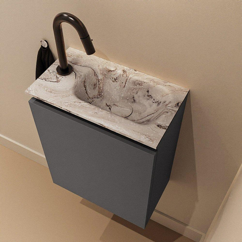 MONDIAZ TURE-DLUX Meuble WC 40 cm Dark Grey. Lavabo EDEN Glace position droite. Avec 1 trou de robinet.