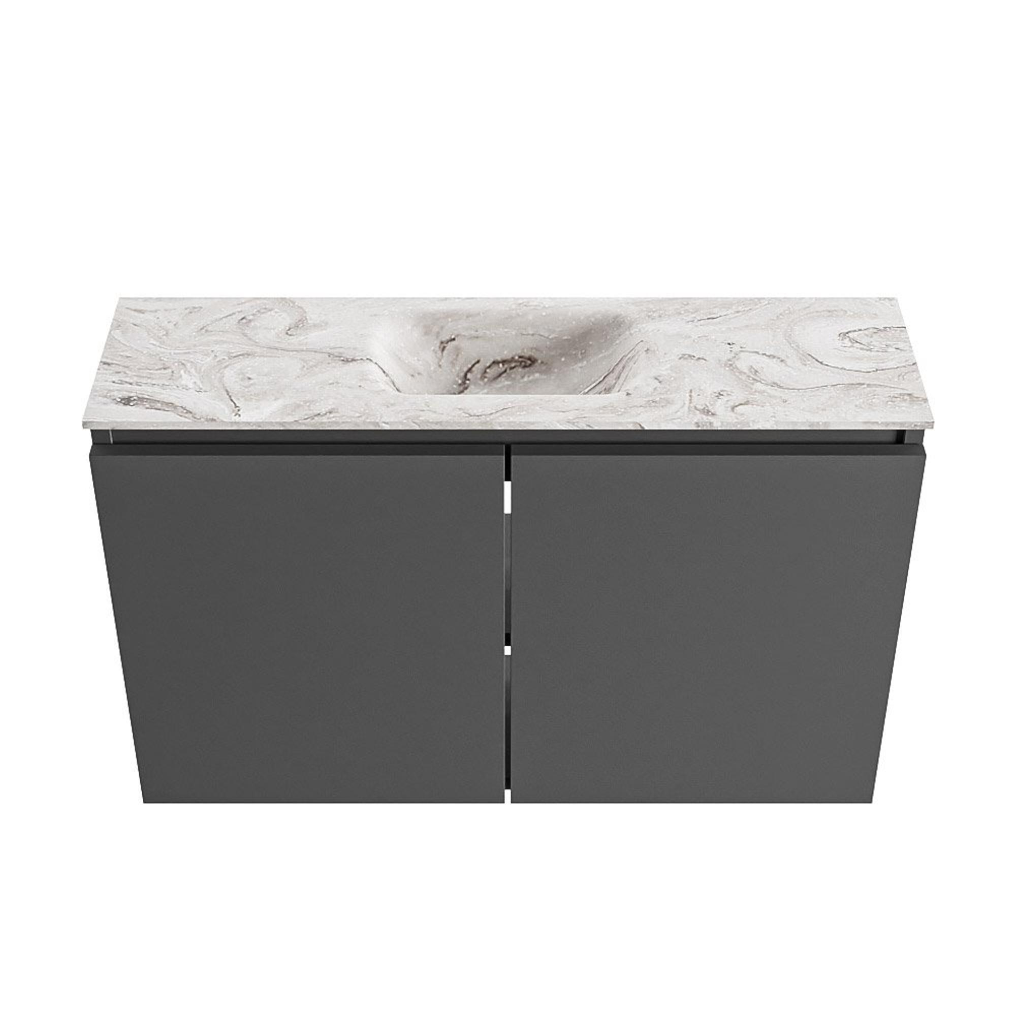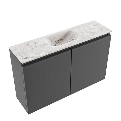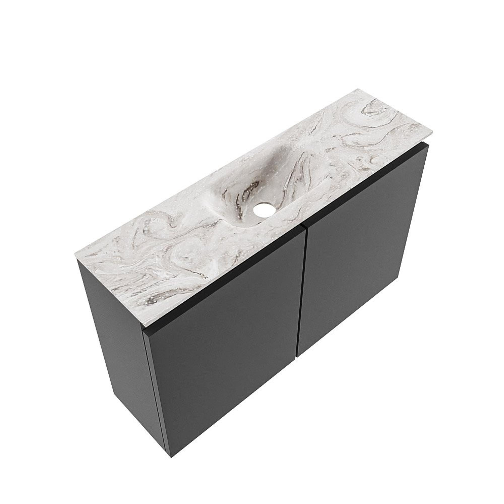 MONDIAZ TURE-DLUX Meuble WC 80 cm Dark Grey. Lavabo EDEN Glace position milieu. Sans trou de robinet.