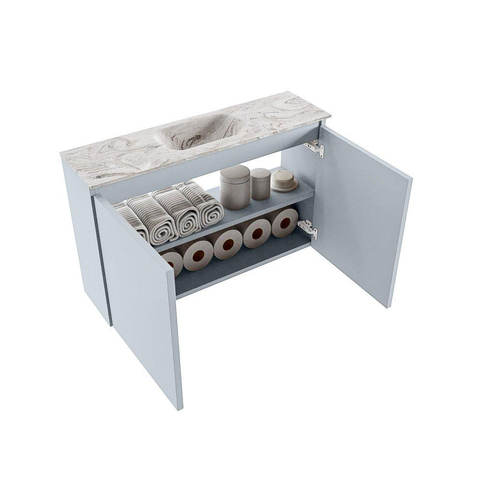 MONDIAZ TURE-DLUX Meuble de toilettes 80 cm Clay. EDEN lavabo Glace position milieu. Sans trou de robinet.
