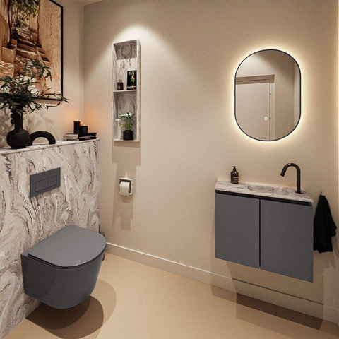 MONDIAZ TURE-DLUX meuble de toilettes 60cm Dark Grey. EDEN lavabo Glace position droite. Avec 1 trou de robinet.