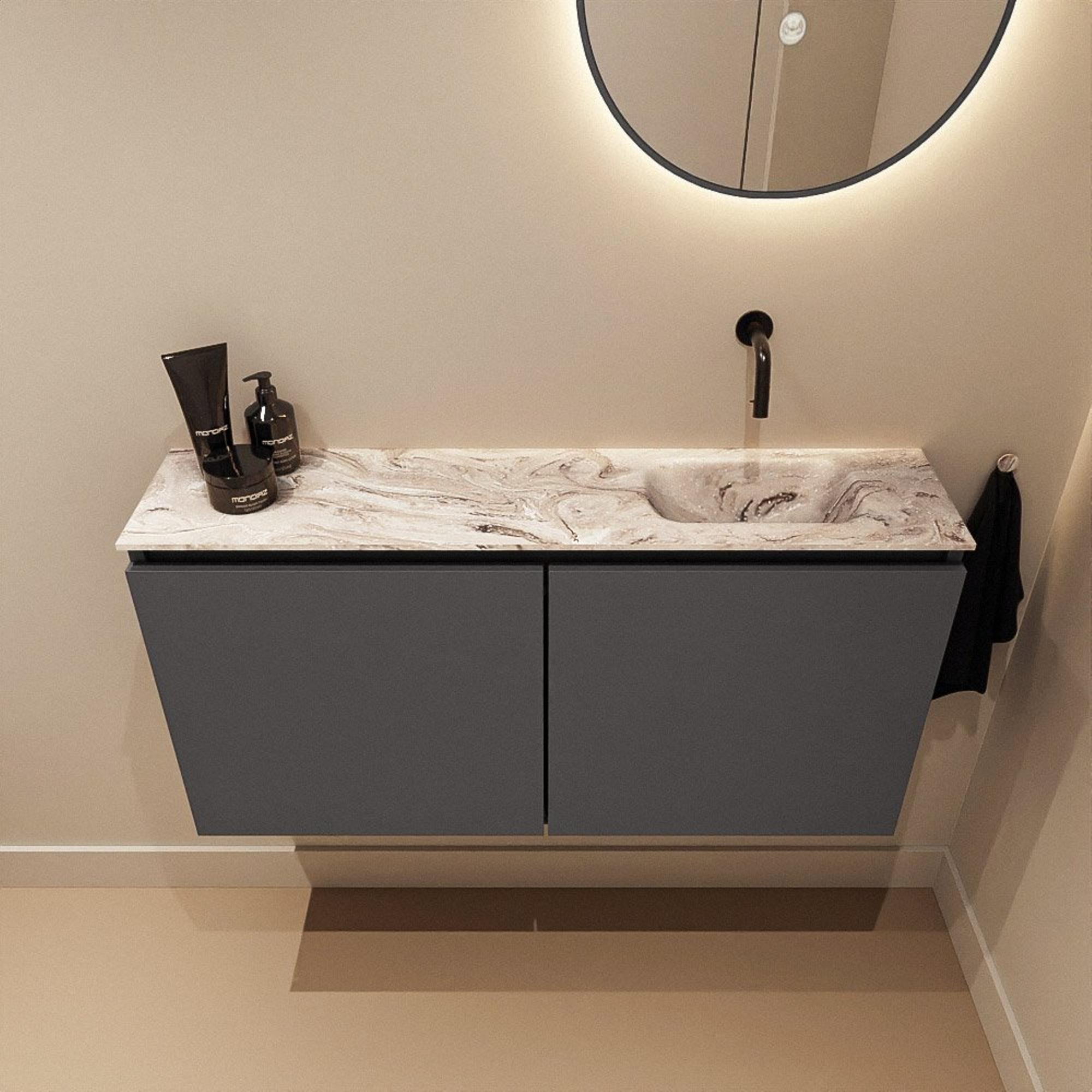 MONDIAZ TURE-DLUX Meuble WC 100cm Dark Grey. Lavabo EDEN Glace position à droite. Sans trou de robinet.
