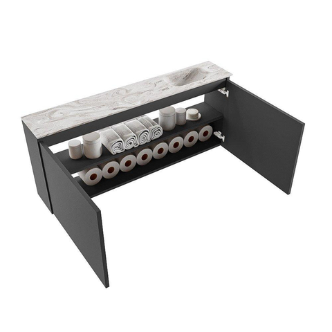 MONDIAZ TURE-DLUX meuble de toilettes 120cm Dark Grey. EDEN lavabo Glace position à droite. Avec 1 trou de robinet.