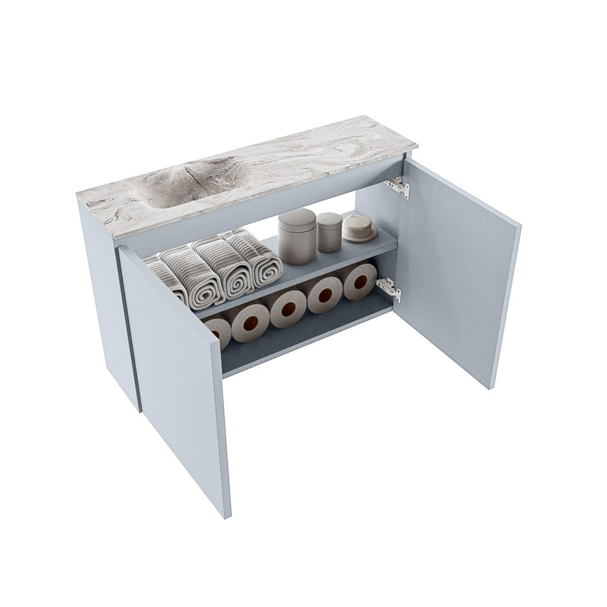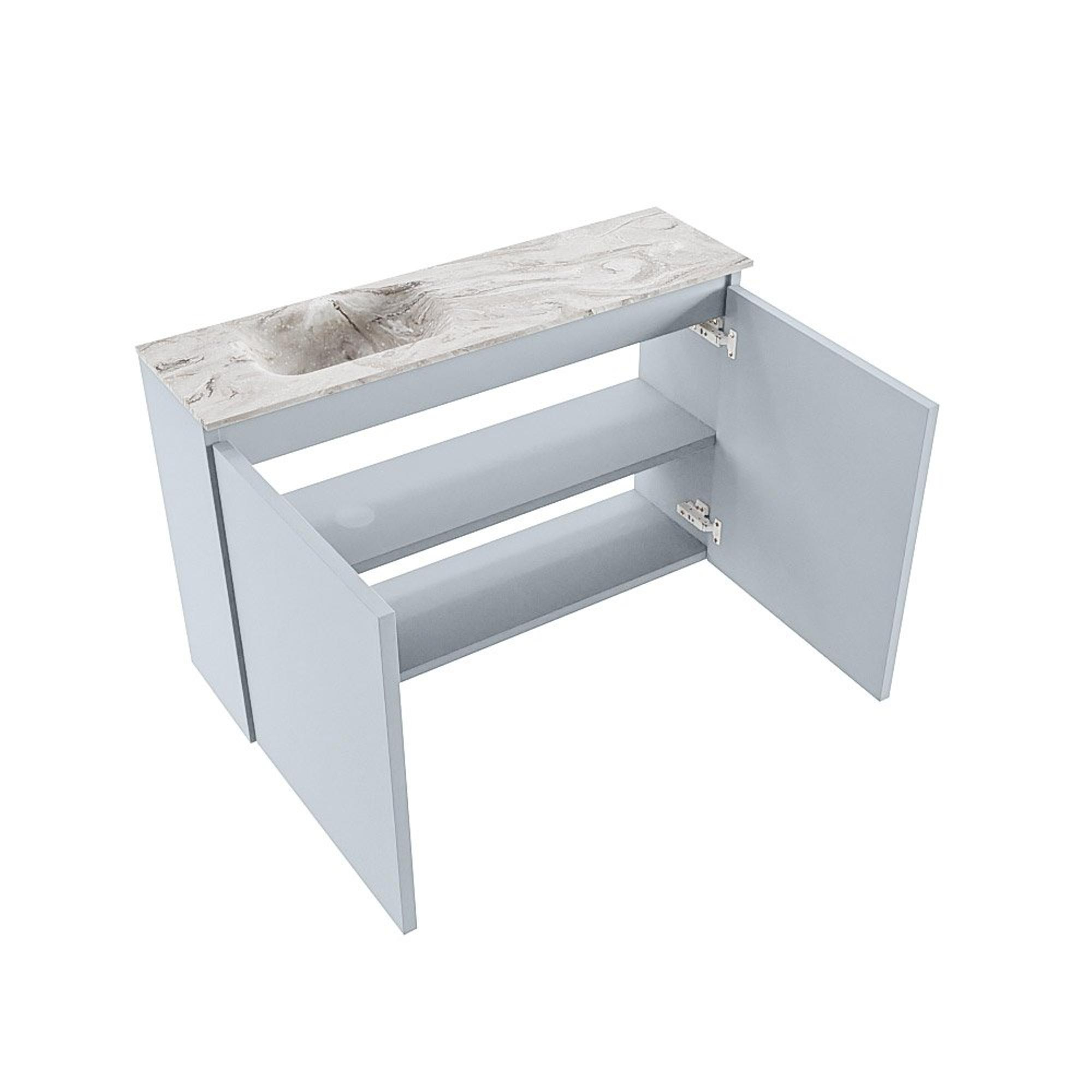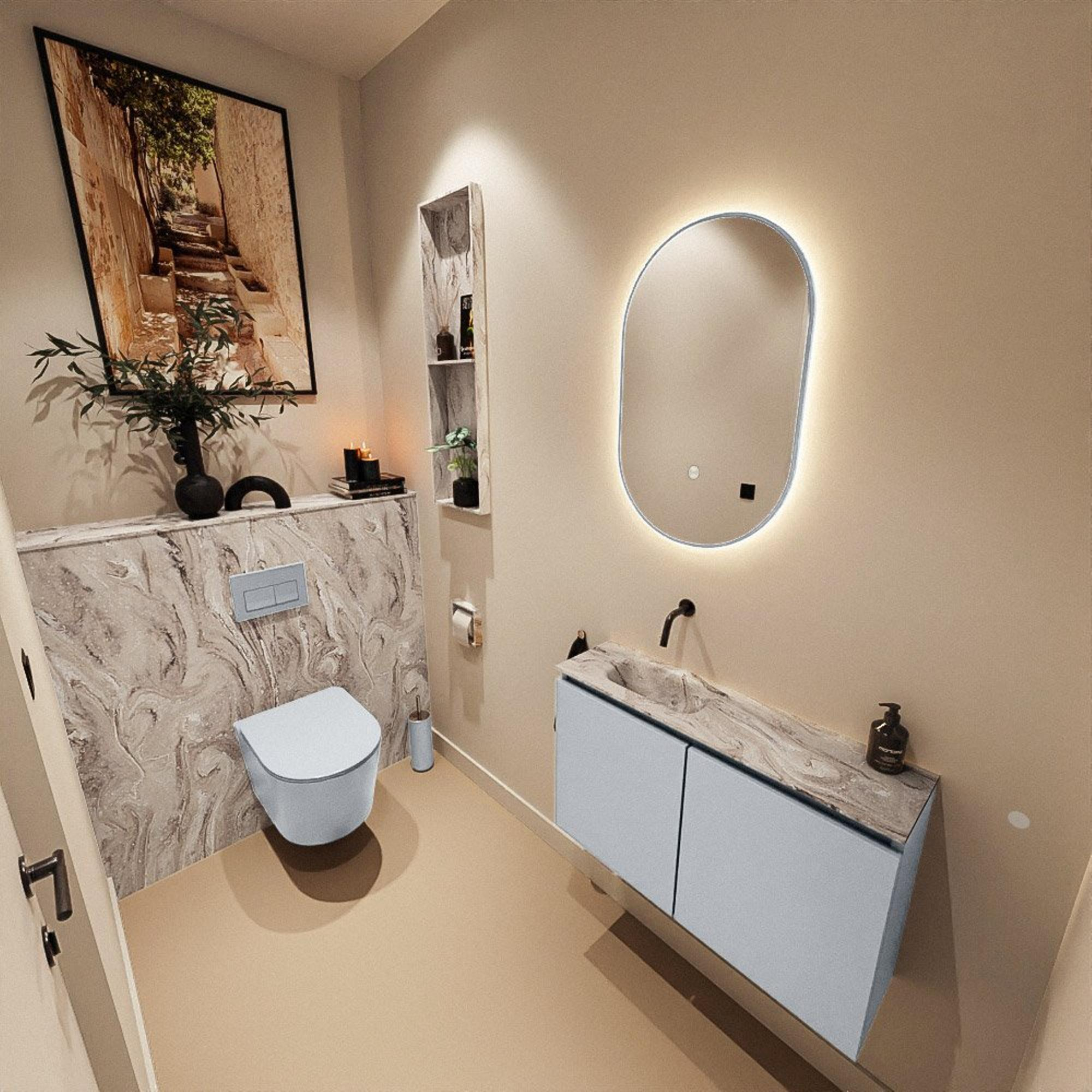 MONDIAZ TURE-DLUX meuble WC 80 cm Clay. EDEN plan vasque Glace position gauche. Sans trou de robinet.