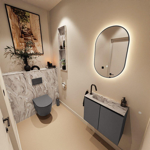 MONDIAZ TURE-DLUX meuble de toilette 60 cm Dark Grey. EDEN vasque Glace position gauche. Avec 1 trou de robinet.