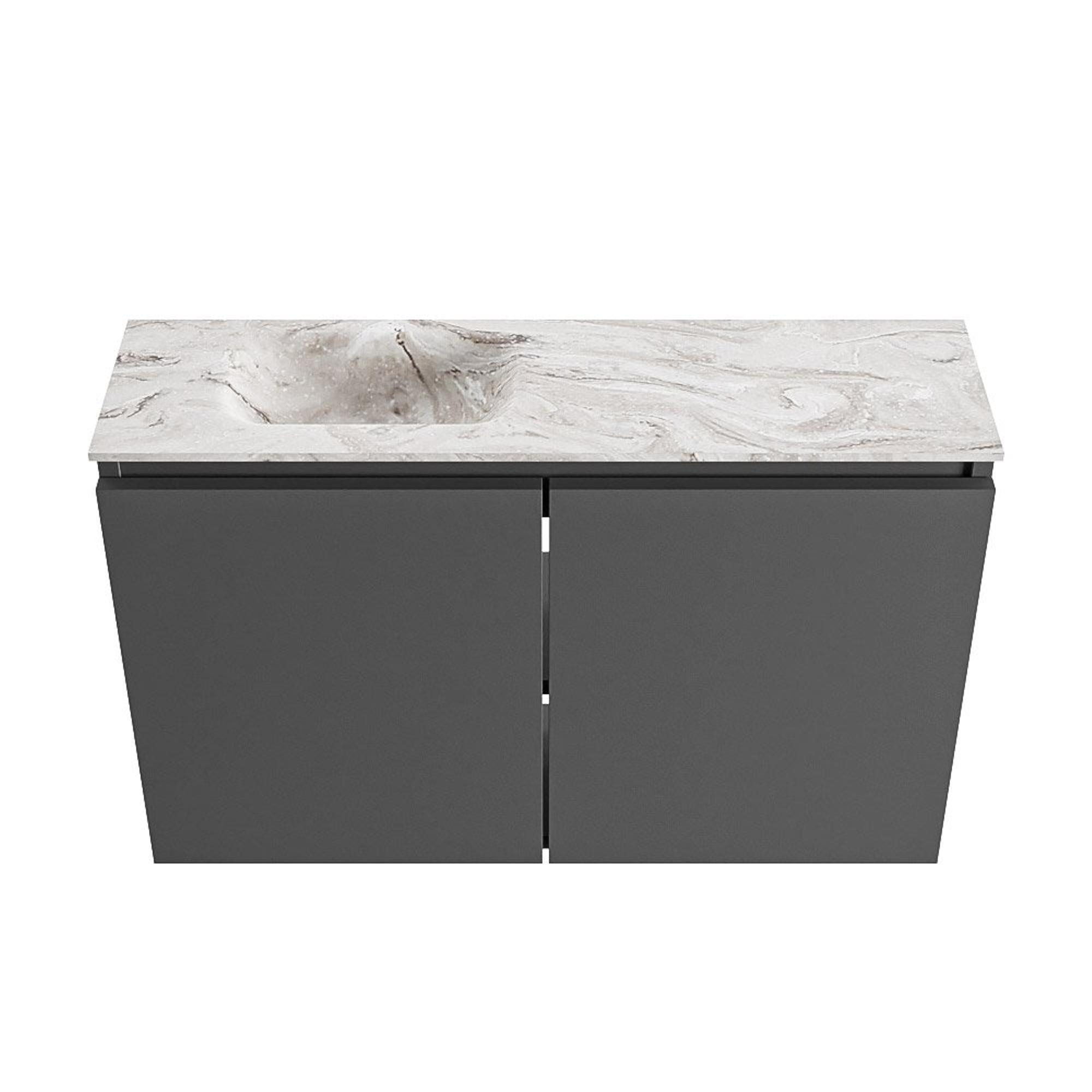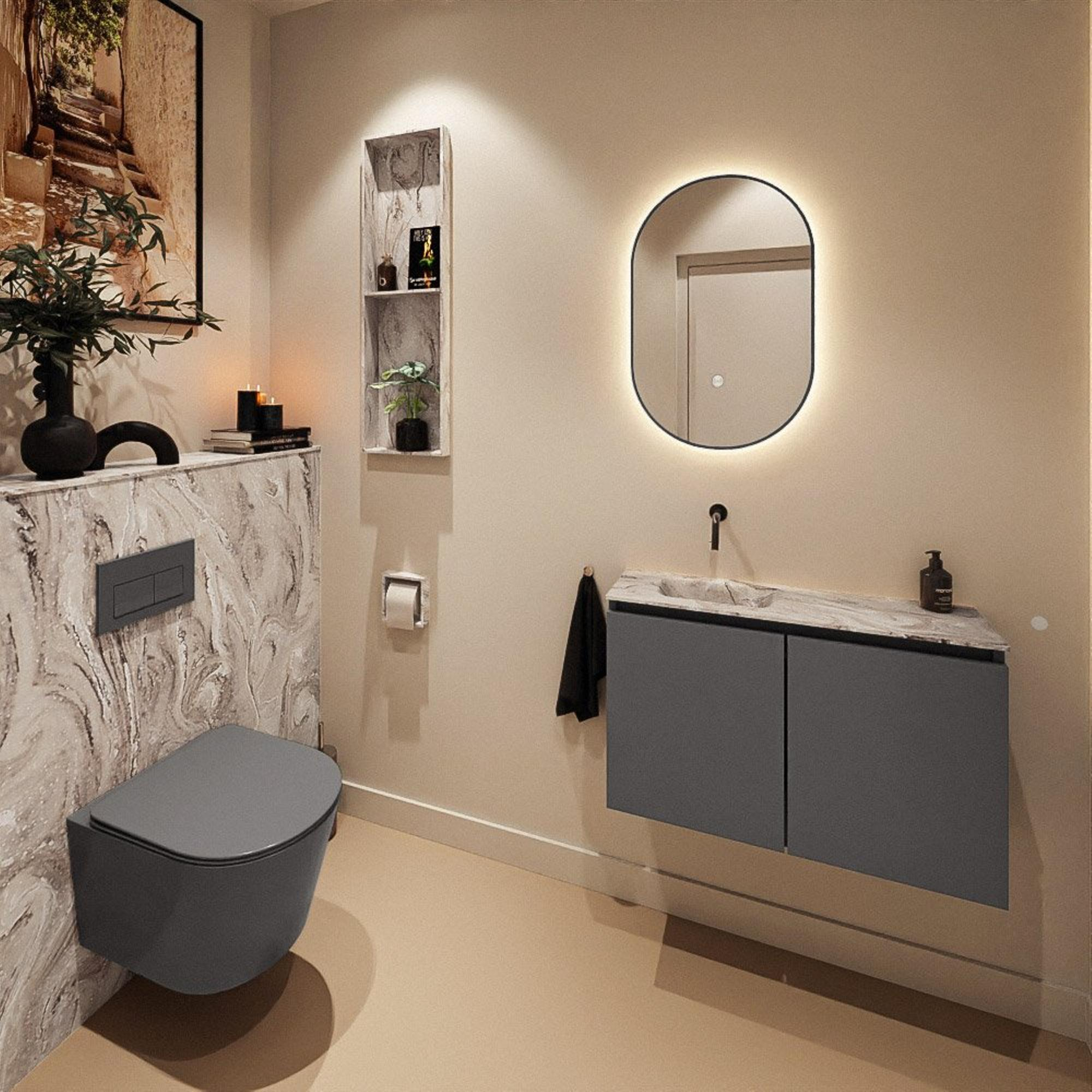 MONDIAZ TURE-DLUX Meuble WC 80cm Dark Grey. EDEN lavabo Glace position gauche. Sans trou de robinet.