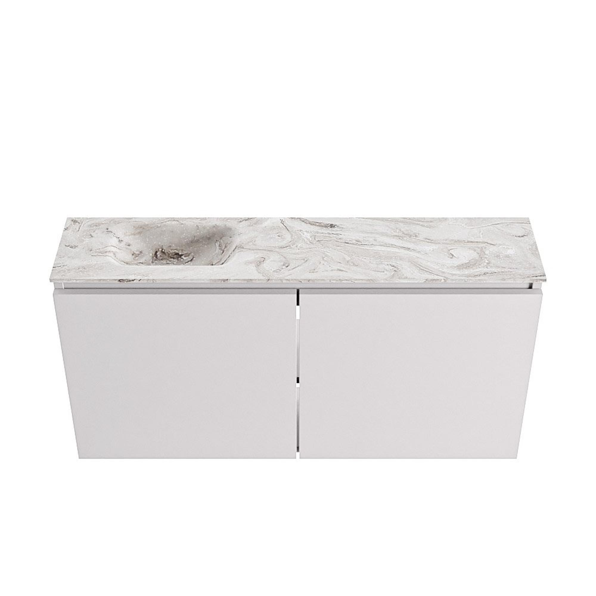 - Couleur de meuble gris moderne Cale avec plan à l’aspect marbre dans la couleur Glace pour une apparence luxueuse.