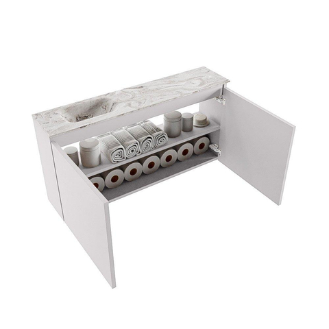 MONDIAZ TURE-DLUX Meuble de toilettes 100 cm Cale. Lavabo EDEN Glace position à gauche. Avec 1 trou de robinet.