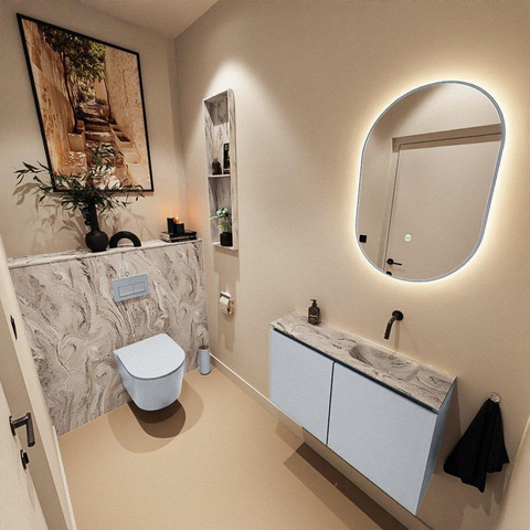 MONDIAZ TURE-DLUX meuble WC 80cm Clay. Lavabo EDEN Glace position droite. Sans trou de robinet.