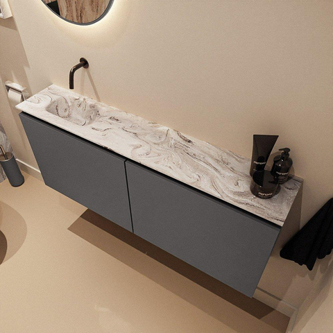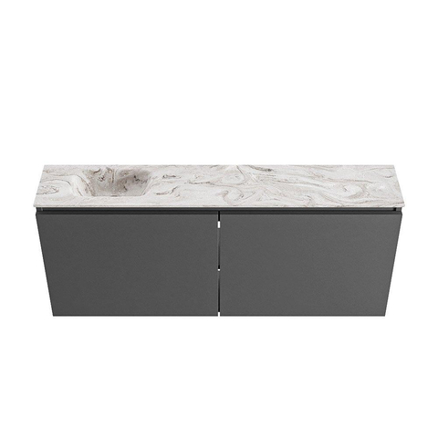 MONDIAZ TURE-DLUX Meuble WC 120 cm Dark Grey. Lavabo EDEN Glace position gauche. Sans trou de robinet.