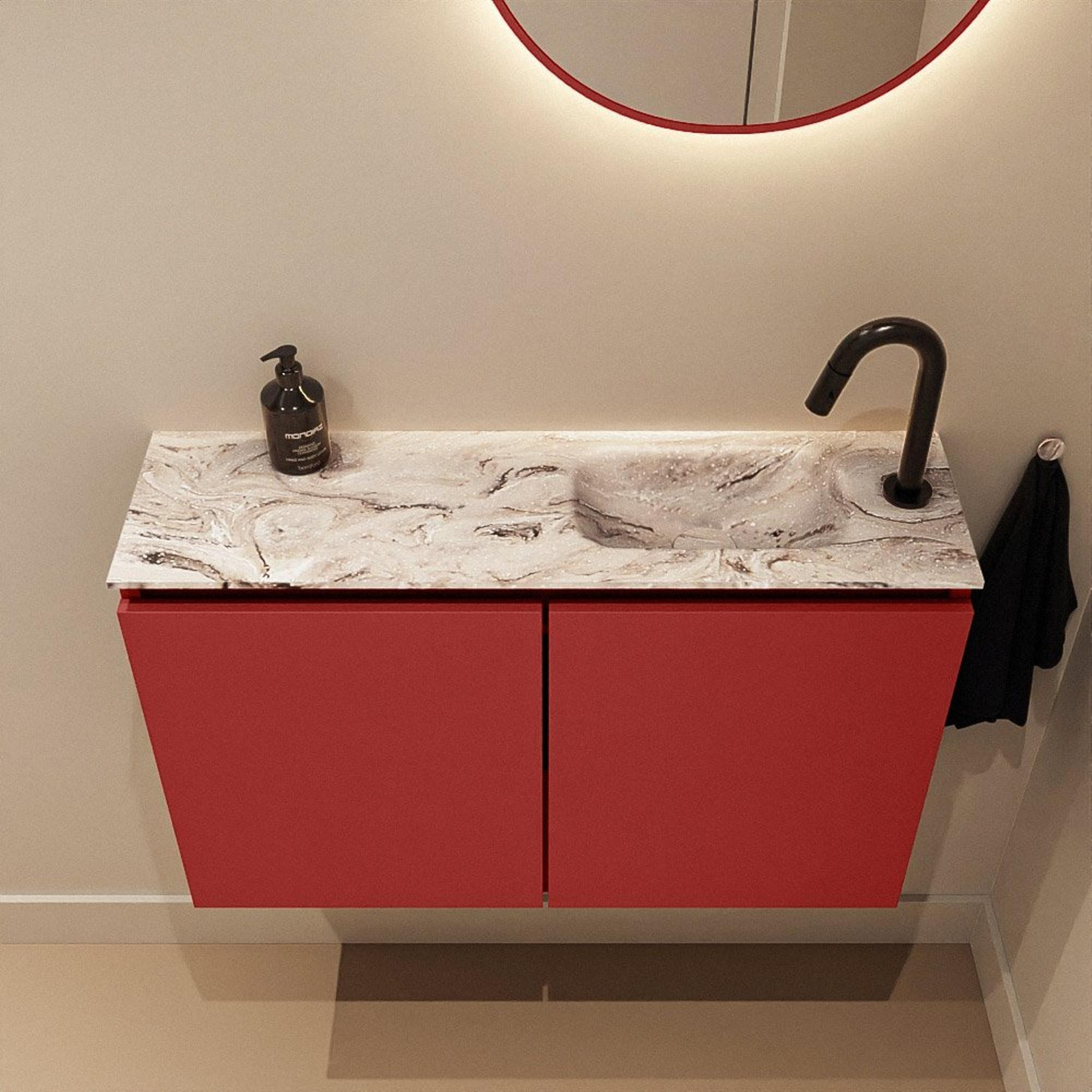 MONDIAZ TURE-DLUX Meuble WC 80 cm Fire. EDEN lavabo Glace position droite. Avec 1 trou de robinet.