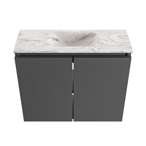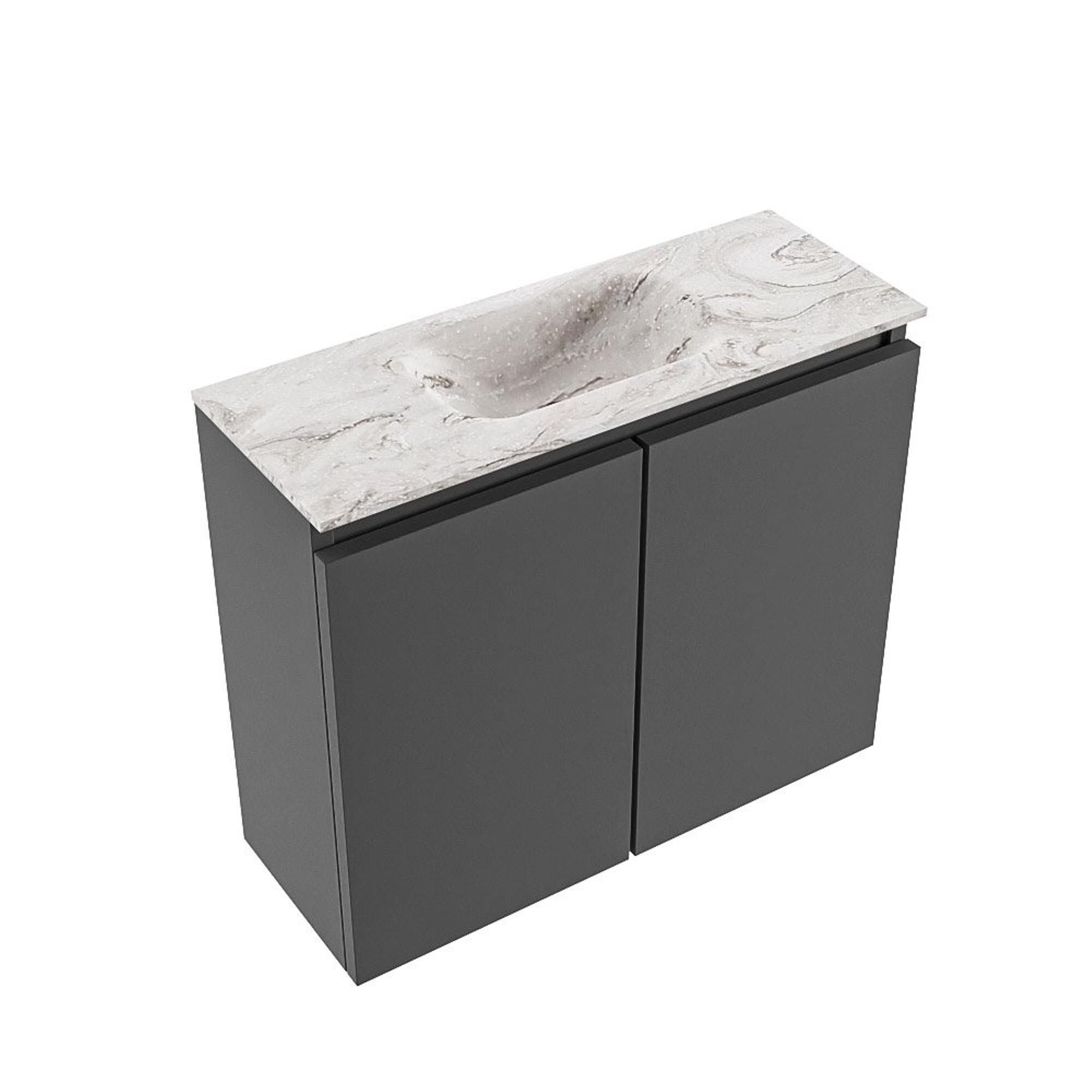 MONDIAZ TURE-DLUX Meuble WC 60 cm Dark Grey. Lavabo EDEN Glace position milieu. Avec 1 trou de robinet.