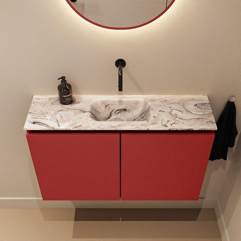MONDIAZ TURE-DLUX Meuble de toilettes 80 cm Fire. EDEN lavabo Glace position milieu. Sans trou de robinet.