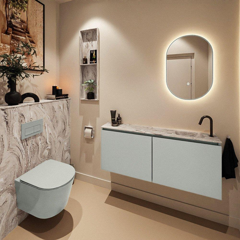 MONDIAZ TURE-DLUX meuble WC 120 cm Greey. Lavabo EDEN Glace position droite. Avec 1 trou de robinet.