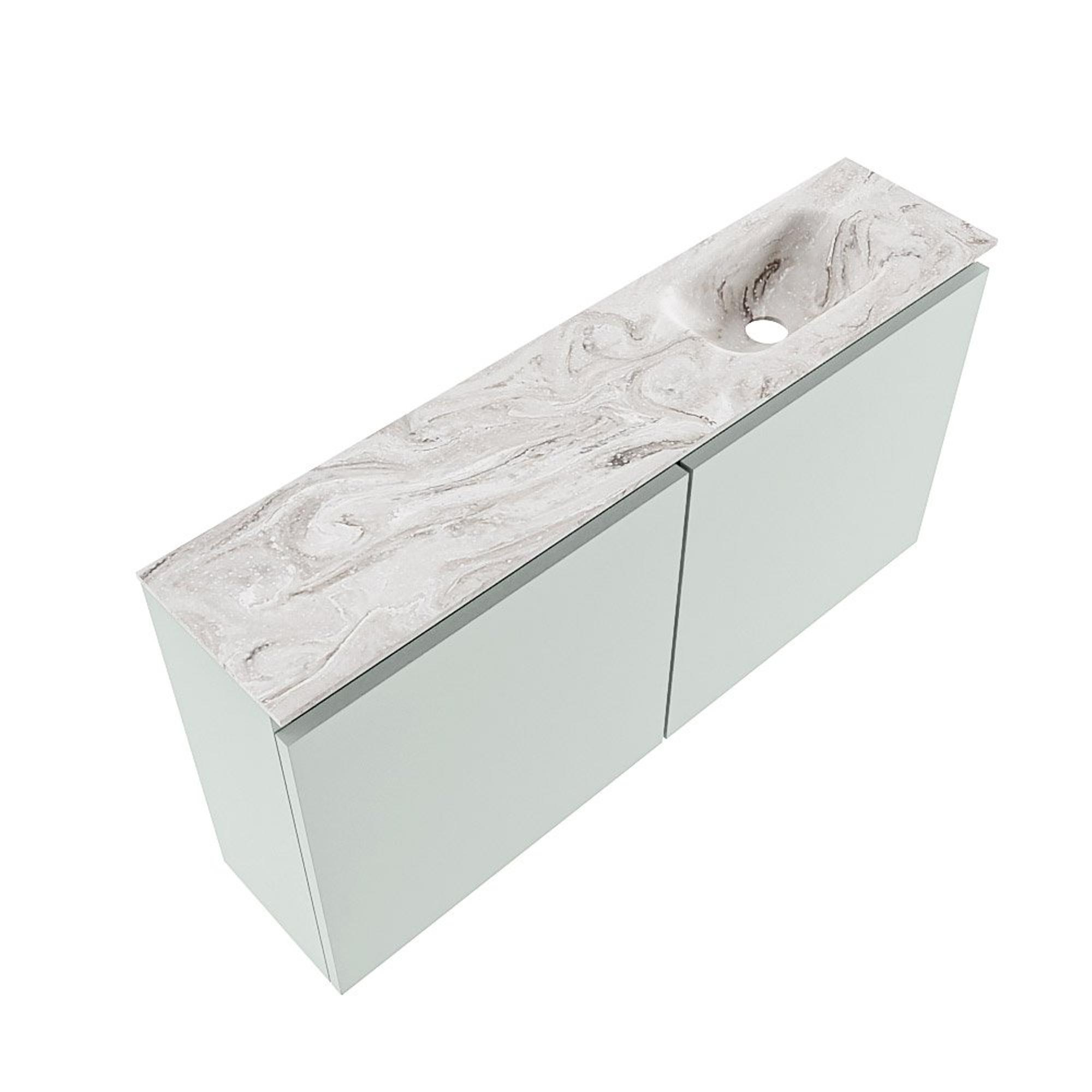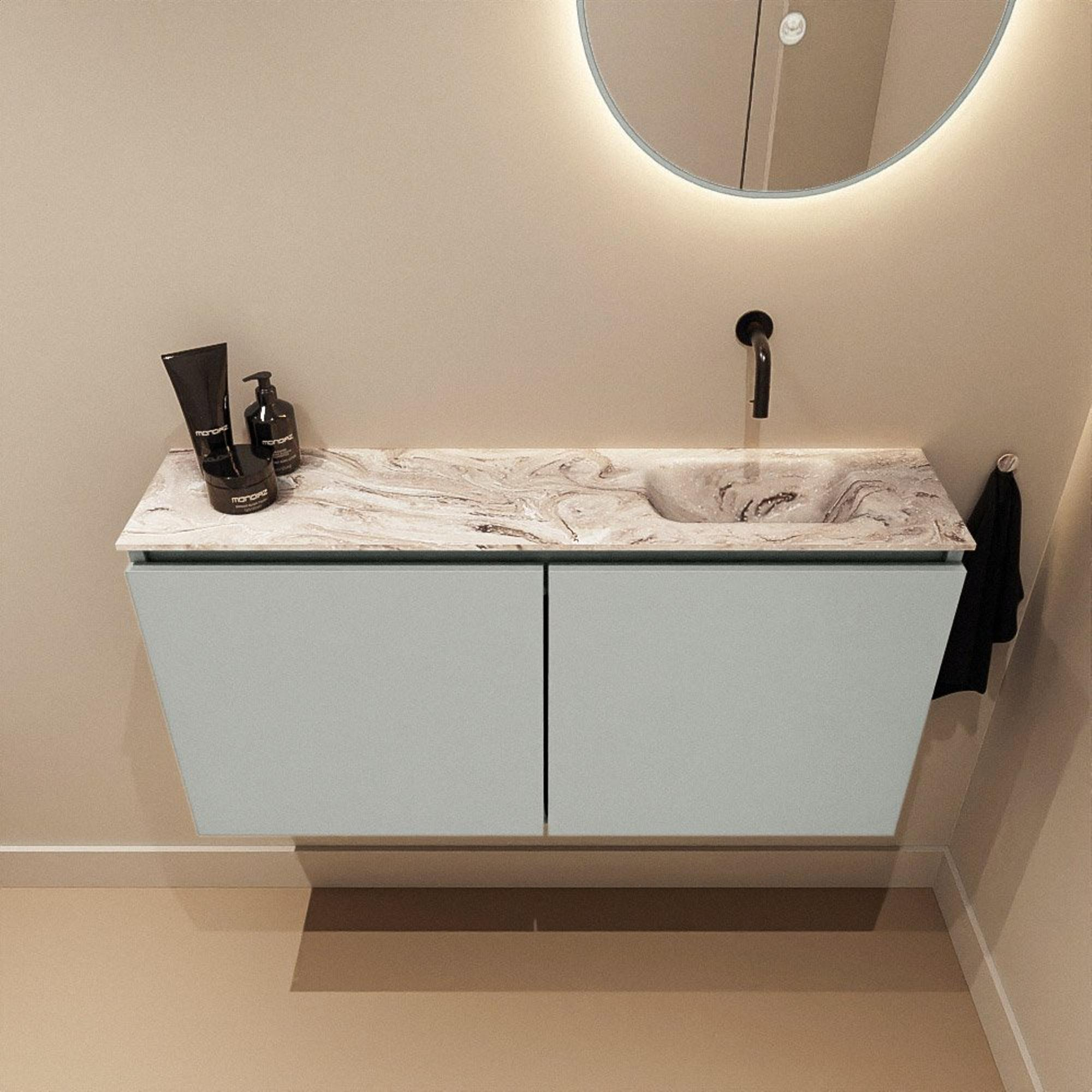 MONDIAZ TURE-DLUX Meuble de toilette 100cm Greey. EDEN vasque Glace position à droite. Sans trou de robinet.