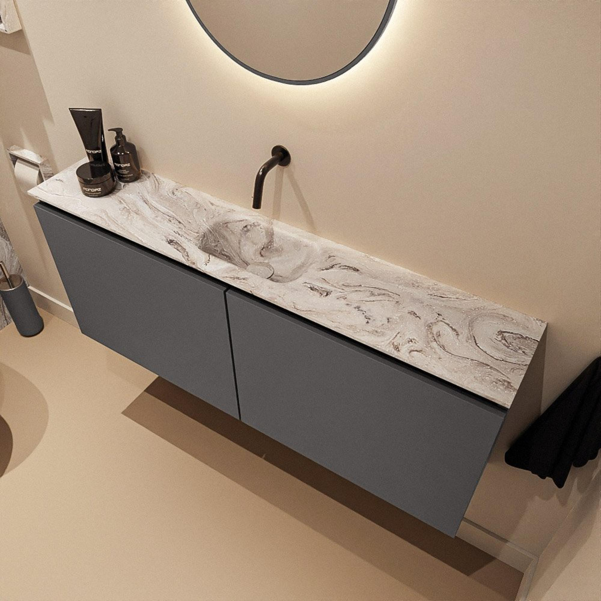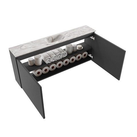 MONDIAZ TURE-DLUX Meuble WC 120 cm Dark Grey. Lavabo EDEN Glace position milieu. Sans trou de robinet.