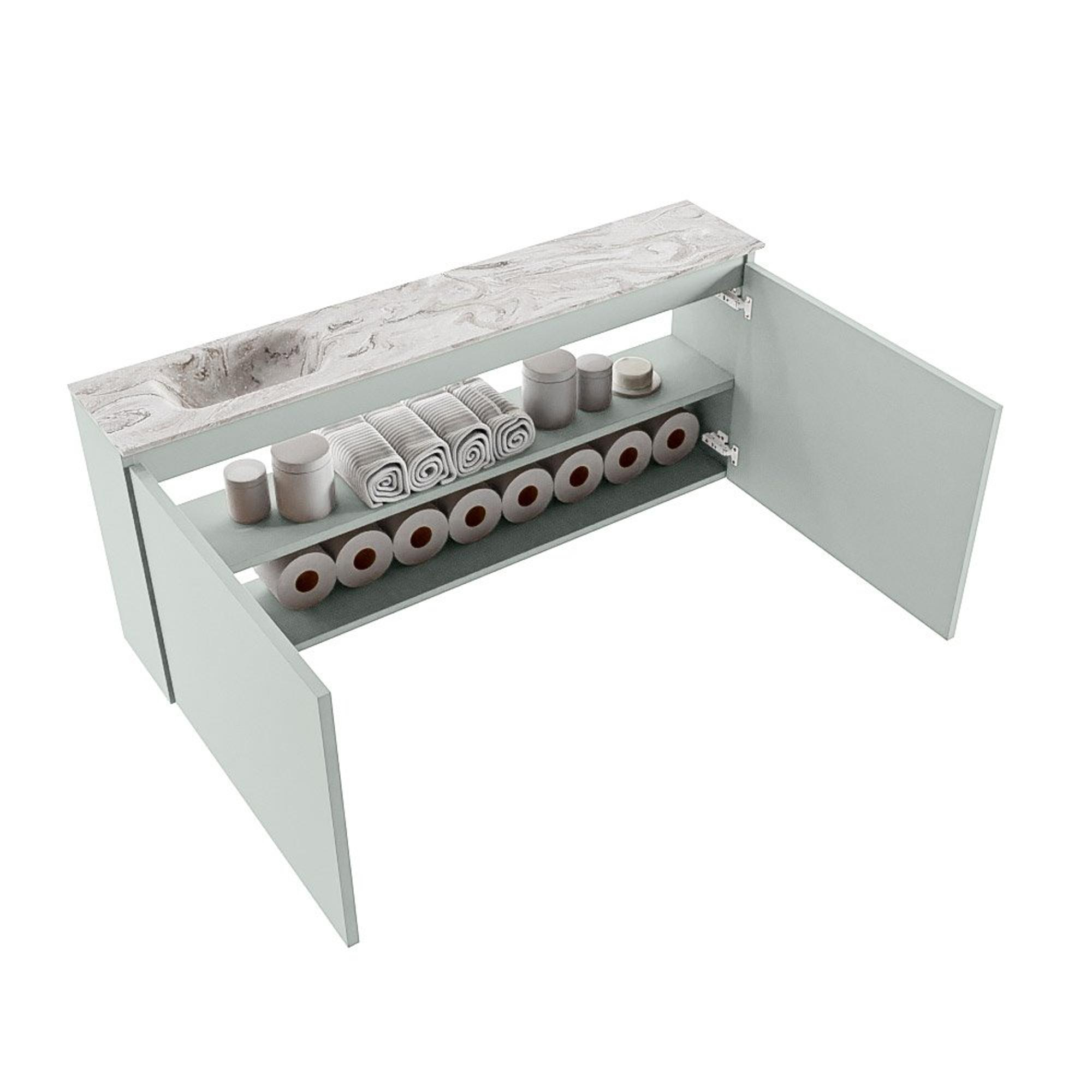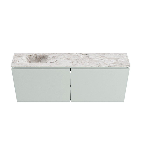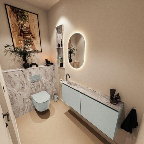 MONDIAZ TURE-DLUX Meuble de toilettes 120cm Greey. Lavabo EDEN Glace position gauche. Avec 1 trou de robinet.