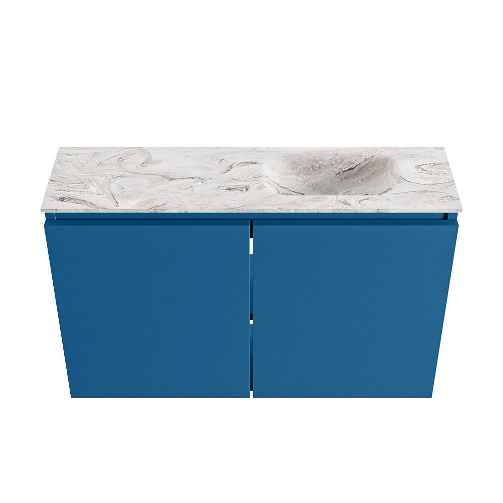 - Couleur de meuble moderne Jeans (bleu), parfaitement combinable avec différents coloris de carrelage et de robinetterie.