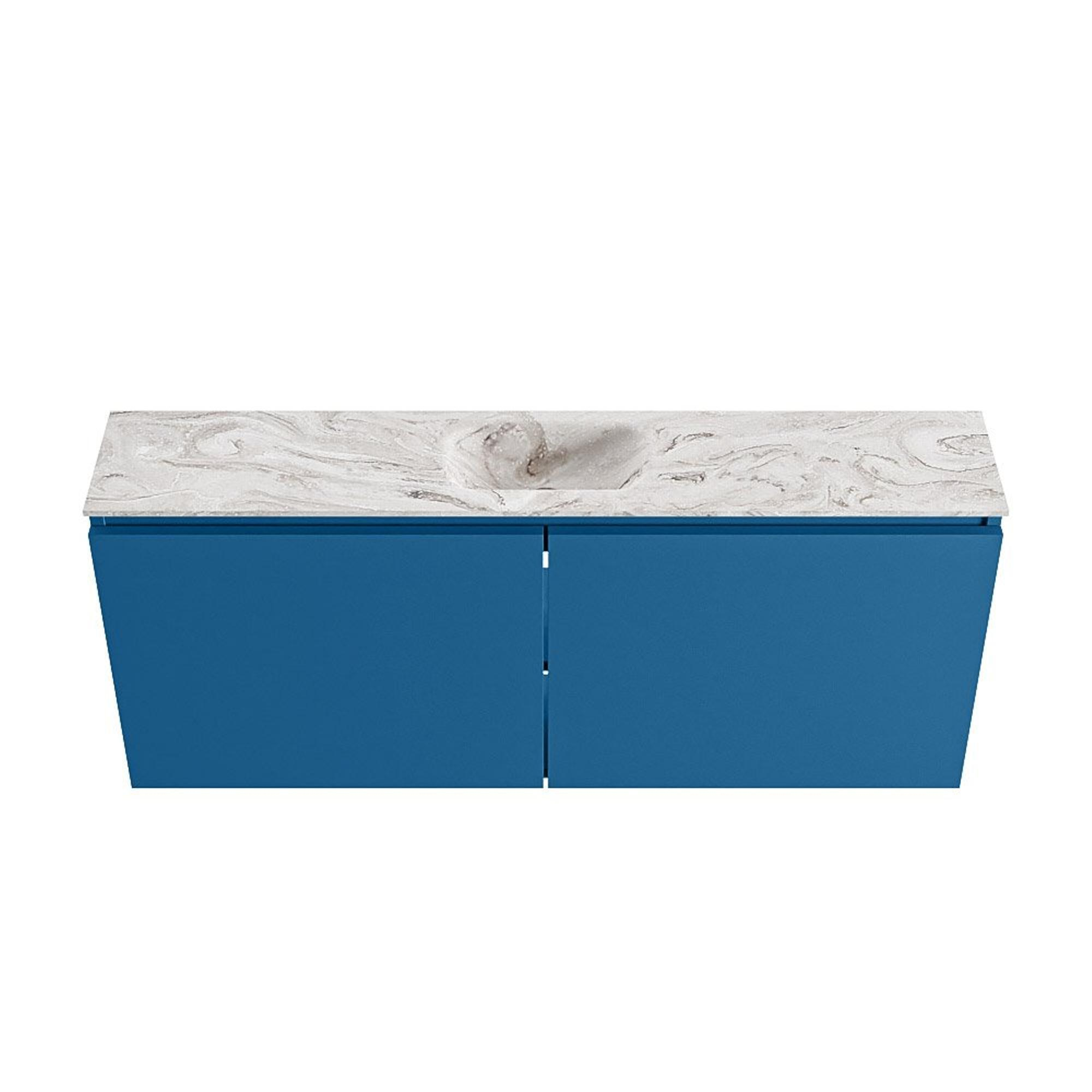 MONDIAZ TURE-DLUX meuble WC 120 cm Jeans. Lavabo EDEN Glace position centrale. Sans trou de robinet.