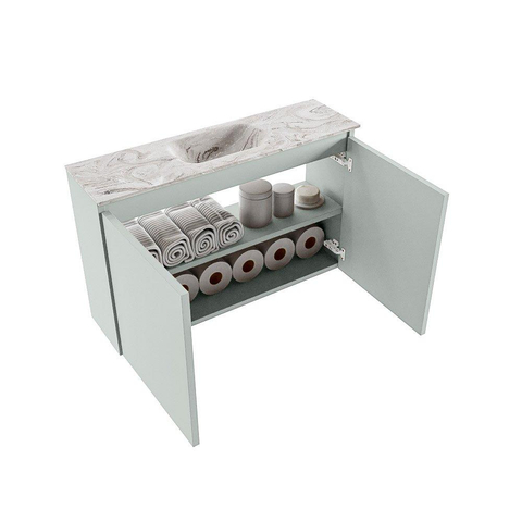 MONDIAZ TURE-DLUX Meuble de toilettes 80 cm Greey. Lavabo EDEN Glace position milieu. Sans trou de robinet.