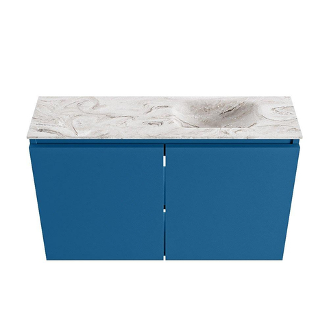 MONDIAZ TURE-DLUX Meuble de toilettes 80cm Jeans. EDEN lavabo Glace position droite. Avec 1 trou de robinet.