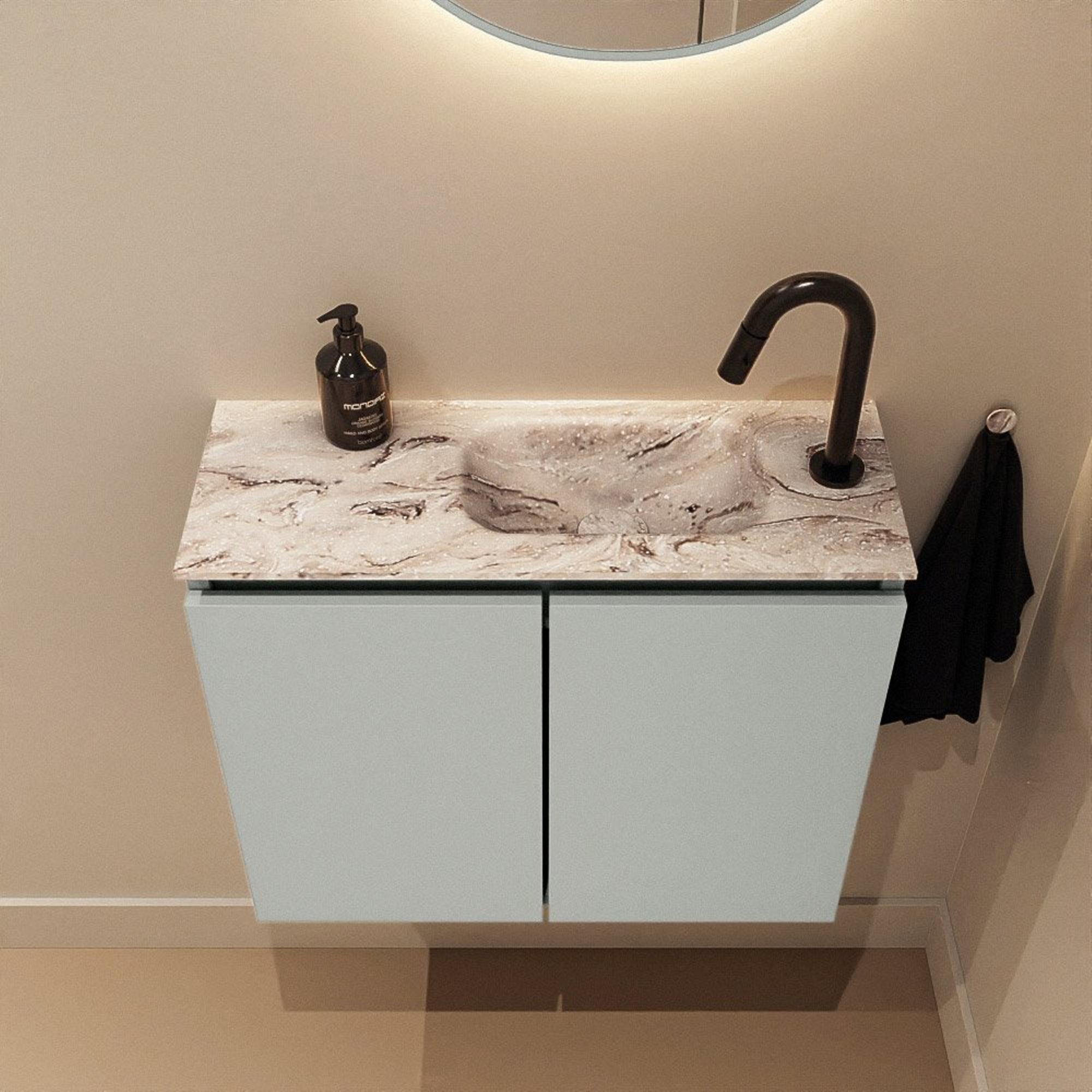 Combinaison élégante du meuble Greey et du lavabo aspect marbre