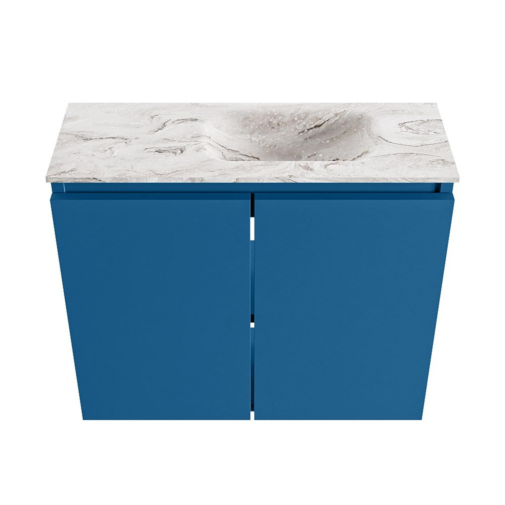MONDIAZ TURE-DLUX meuble WC 60 cm Jeans. EDEN lavabo Glace position droite. Sans trou de robinet.