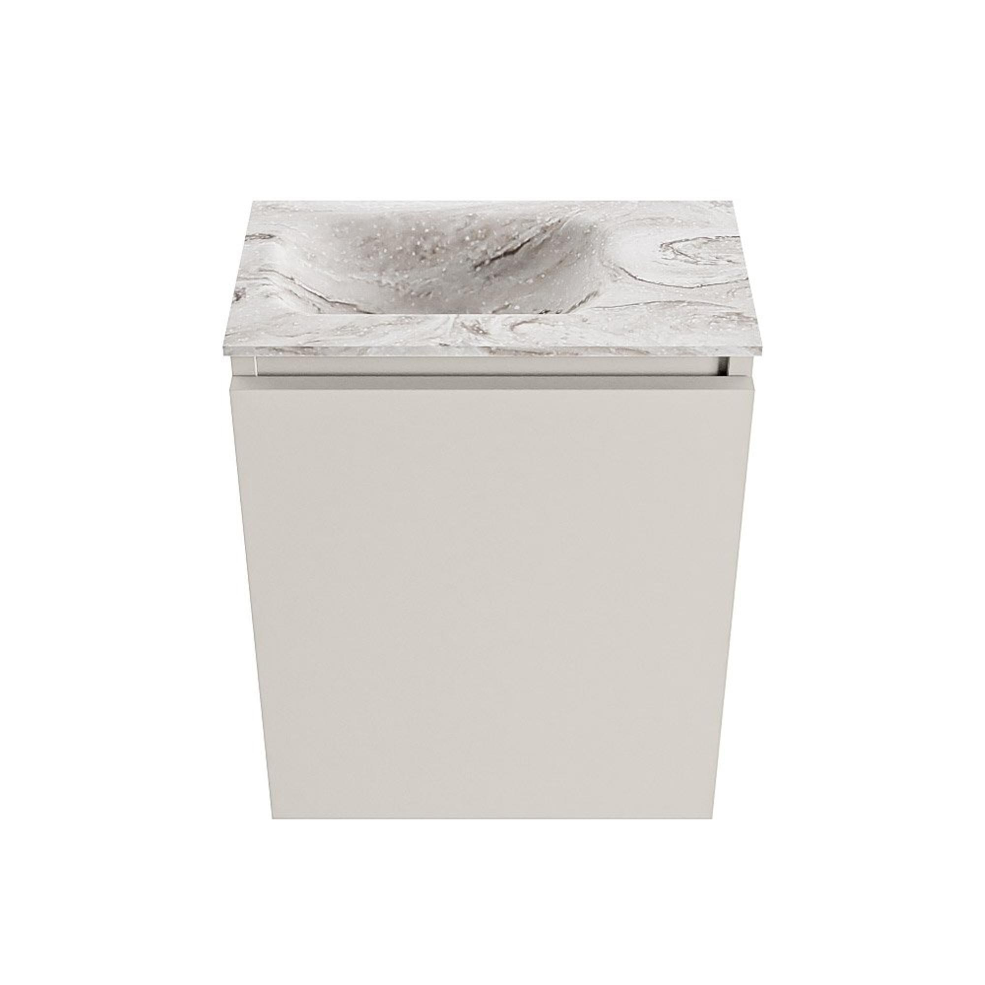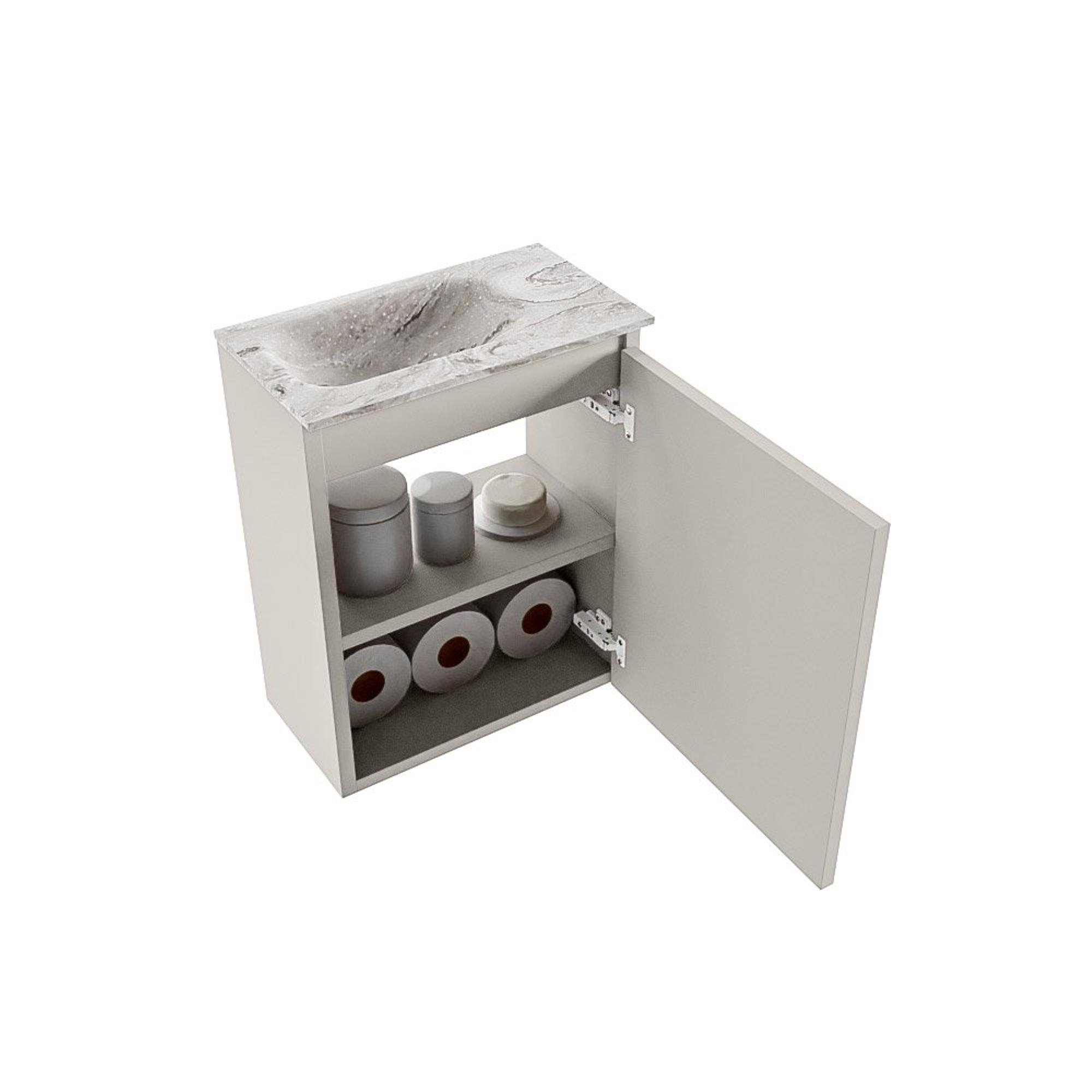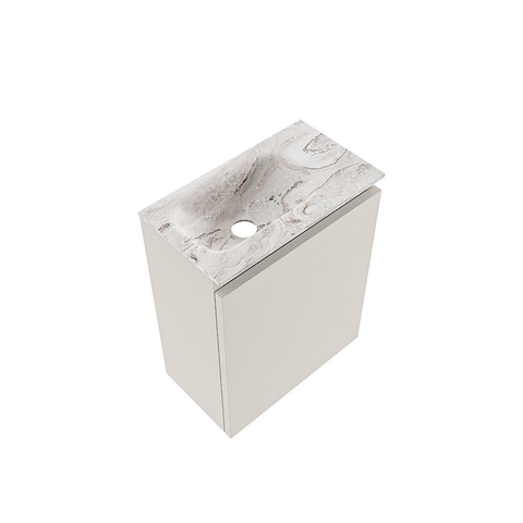 MONDIAZ TURE-DLUX Meuble de toilettes 40 cm Linen. Lavabo EDEN Glace position gauche. Sans trou de robinet.