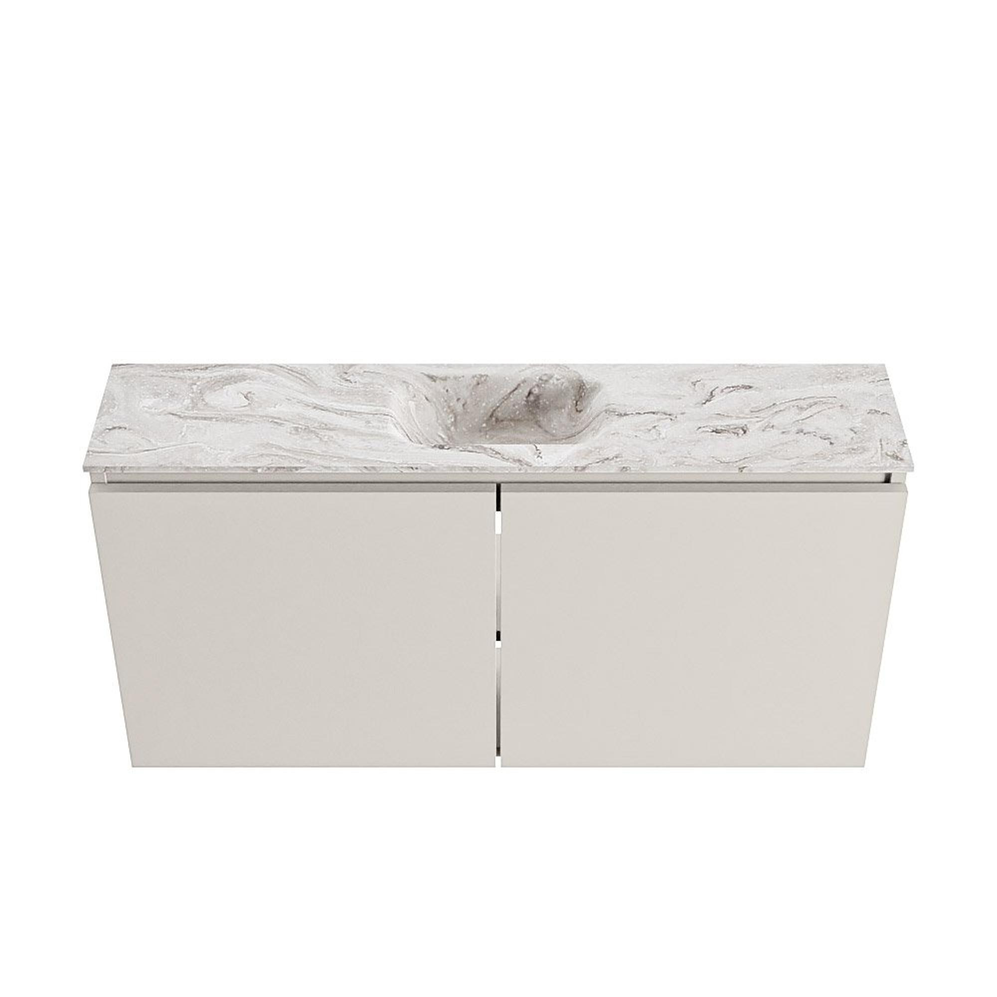 MONDIAZ TURE-DLUX Meuble de toilette 100 cm Linen. Lavabo EDEN Glace position centrale. Sans trou de robinet.