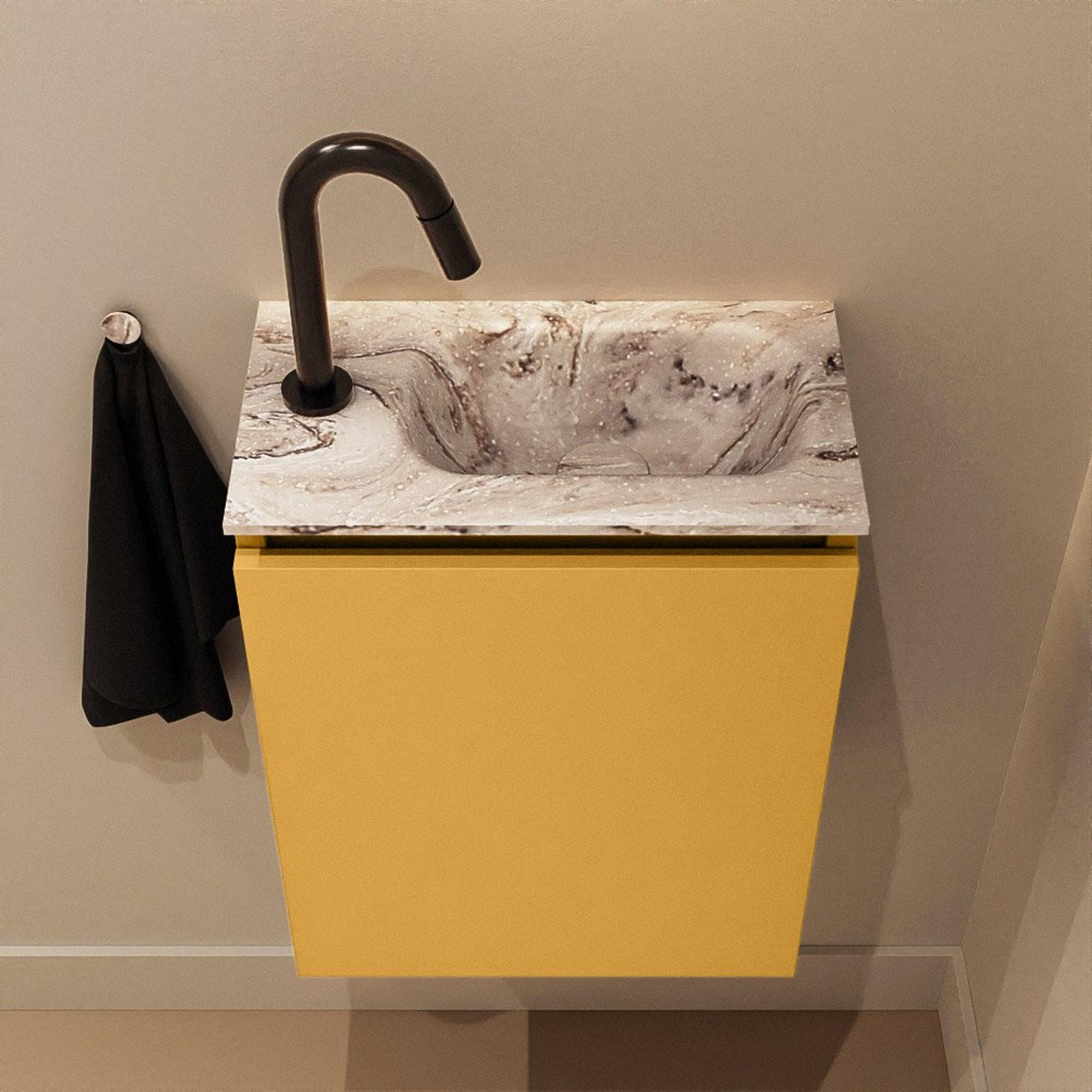 MONDIAZ TURE-DLUX meuble de WC 40 cm Ocher. Lavabo EDEN Glace position à droite. Avec 1 trou de robinet.