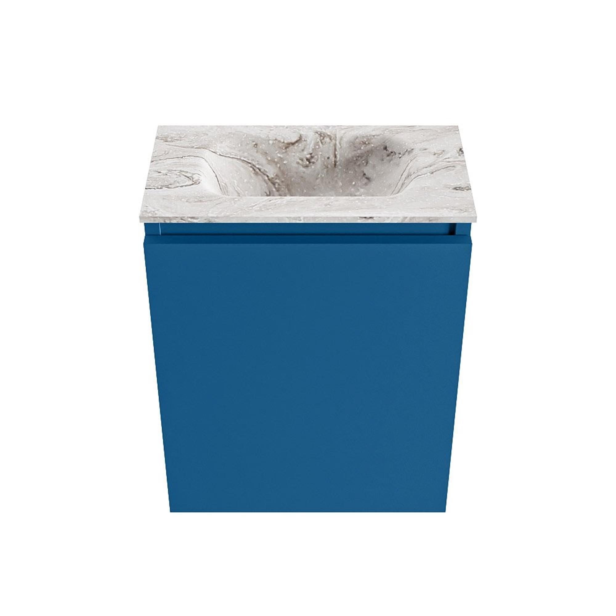 La couleur Jeans du meuble apporte une touche bleue contemporaine à vos toilettes ou à votre salle de bains et forme un joli contraste avec l’élégante finition aspect marbre du plan et du lavabo. Les façades sans poignées renforcent le caractère minimaliste et offrent une apparence moderne et épurée sans surcharge visuelle. Cela rend ce meuble particulièrement adapté aux intérieurs de style scandinave, moderne ou hôtel chic. Le lavabo Eden avec cuve positionnée au centre crée un aspect symétrique et apaisant, de sorte que l’ensemble paraisse toujours soigné. Avec un seul meuble compact, vous ajoutez ainsi immédiatement du style et de la cohérence à vos toilettes.
