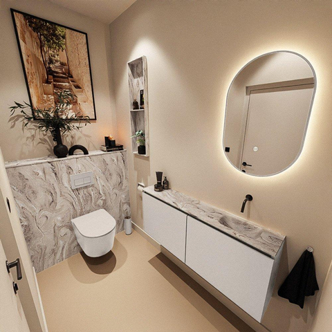 MONDIAZ TURE-DLUX 120cm meuble WC Linen. EDEN lavabo Glace position droite. Sans trou de robinet.