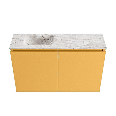 MONDIAZ TURE-DLUX meuble de toilettes 80cm Ocher. Lavabo EDEN Glace position gauche. Avec 1 trou de robinet.